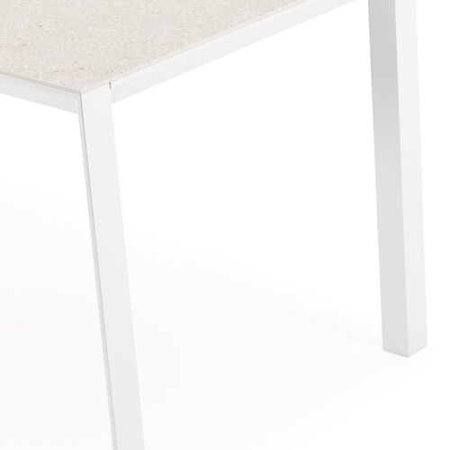 Het frame van de tafel is gemaakt uit roestvrij aluminium, een sterk, maar toch licht materiaal dat makkelijk verplaatsbaar is. Het oppervlak is glad afgewerkt waardoor het geen vuil aantrekt en onderhoudsvriendelijk is. De poedercoating zorgt voor de UV- en weerbestendigheid van je meubel.