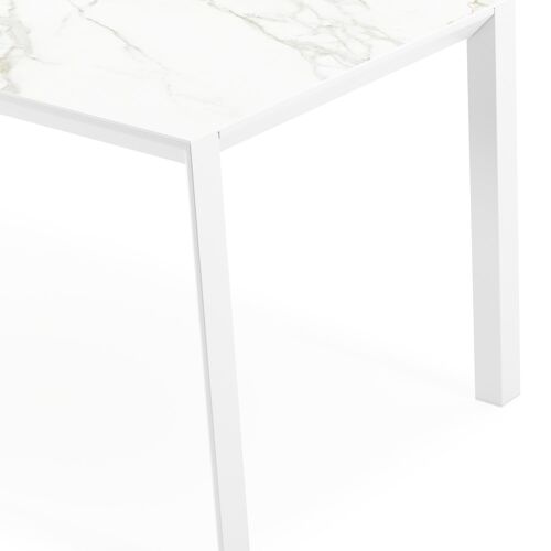 Calacatta is een tafelblad met witte basis die afgewerkt is met grijze aders voor een karakteristieke marmerlook.