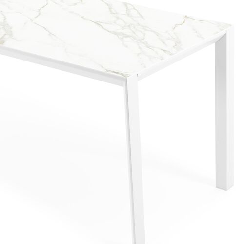 Calacatta is een tafelblad met witte basis die afgewerkt is met grijze aders voor een karakteristieke marmerlook.