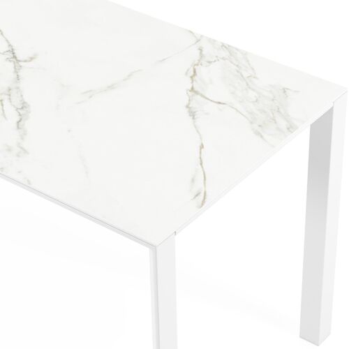 Calacatta is een tafelblad met witte basis die afgewerkt is met grijze aders voor een karakteristieke marmerlook.