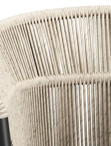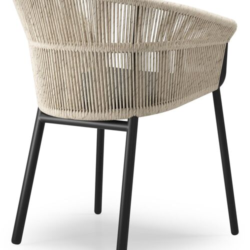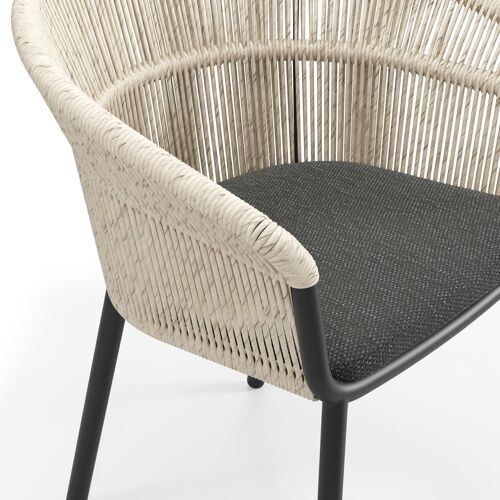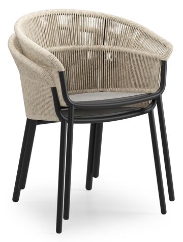 Matera stapelbare tuinstoel in zwart aluminium en beige gedraaide ronde wicker met kussen in sky black weather+ softtouch | Exterioo
