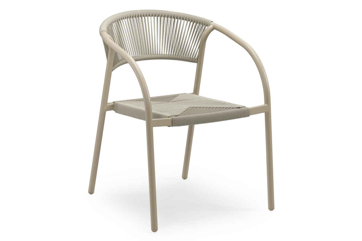 Melo stapelbare tuinstoel in beige aluminium en beige gedraaide ronde wicker | Exterioo
