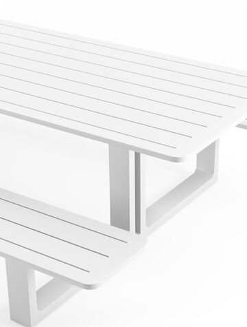 De Merano picknicktafel straalt een eigentijdse elegantie uit met zijn strakke ontwerp en afgeronde hoeken. De tafel nodigt uit tot gezelligheid met zijn ruime instap, waardoor het moeiteloos en comfortabel is om plaats te nemen.