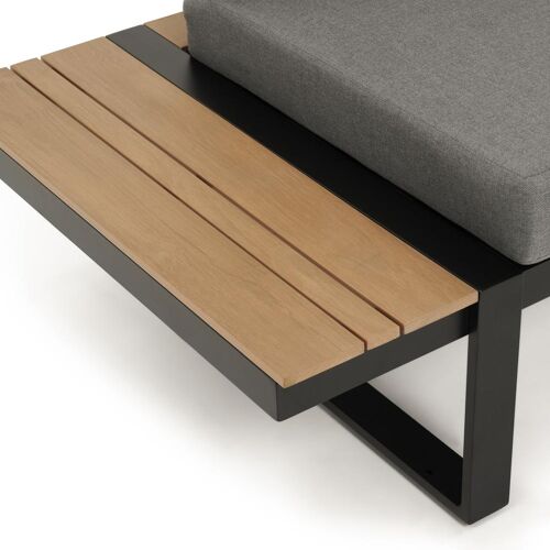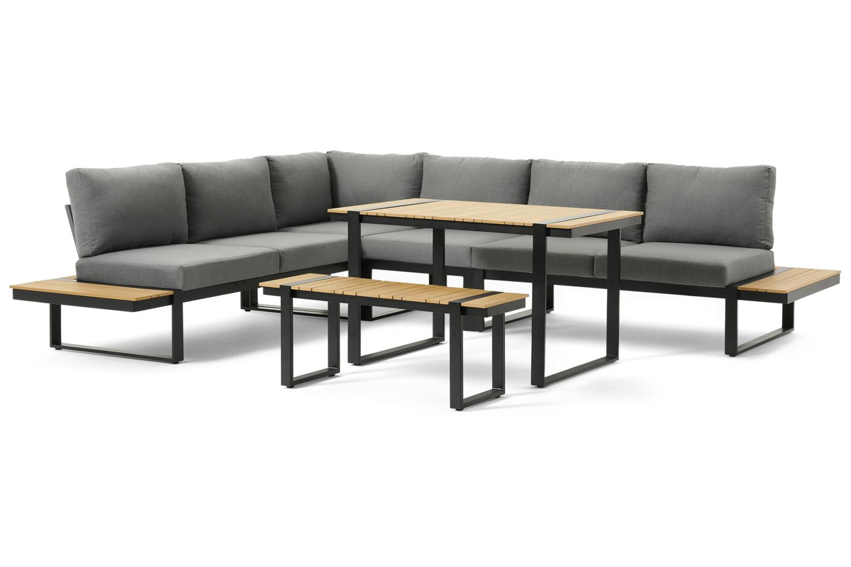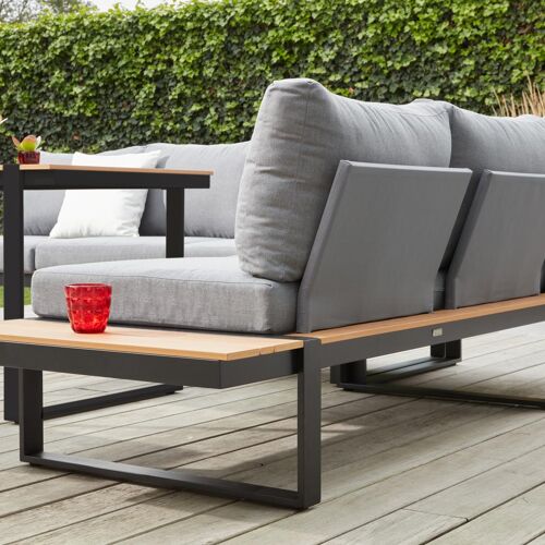 Merida loungehoek in zwart aluminium en polywood met grijs polyester kussen en loungetafel | Exterioo