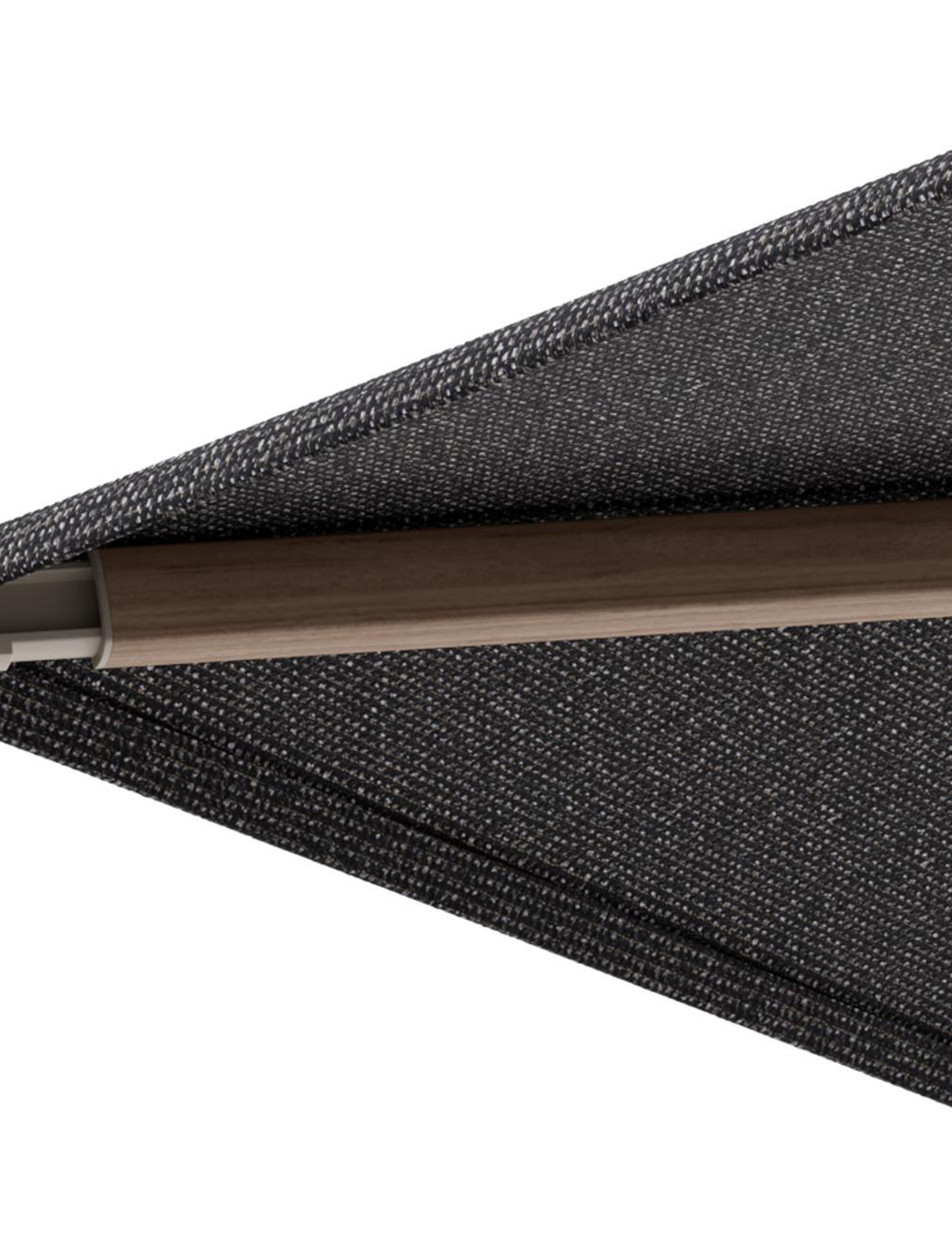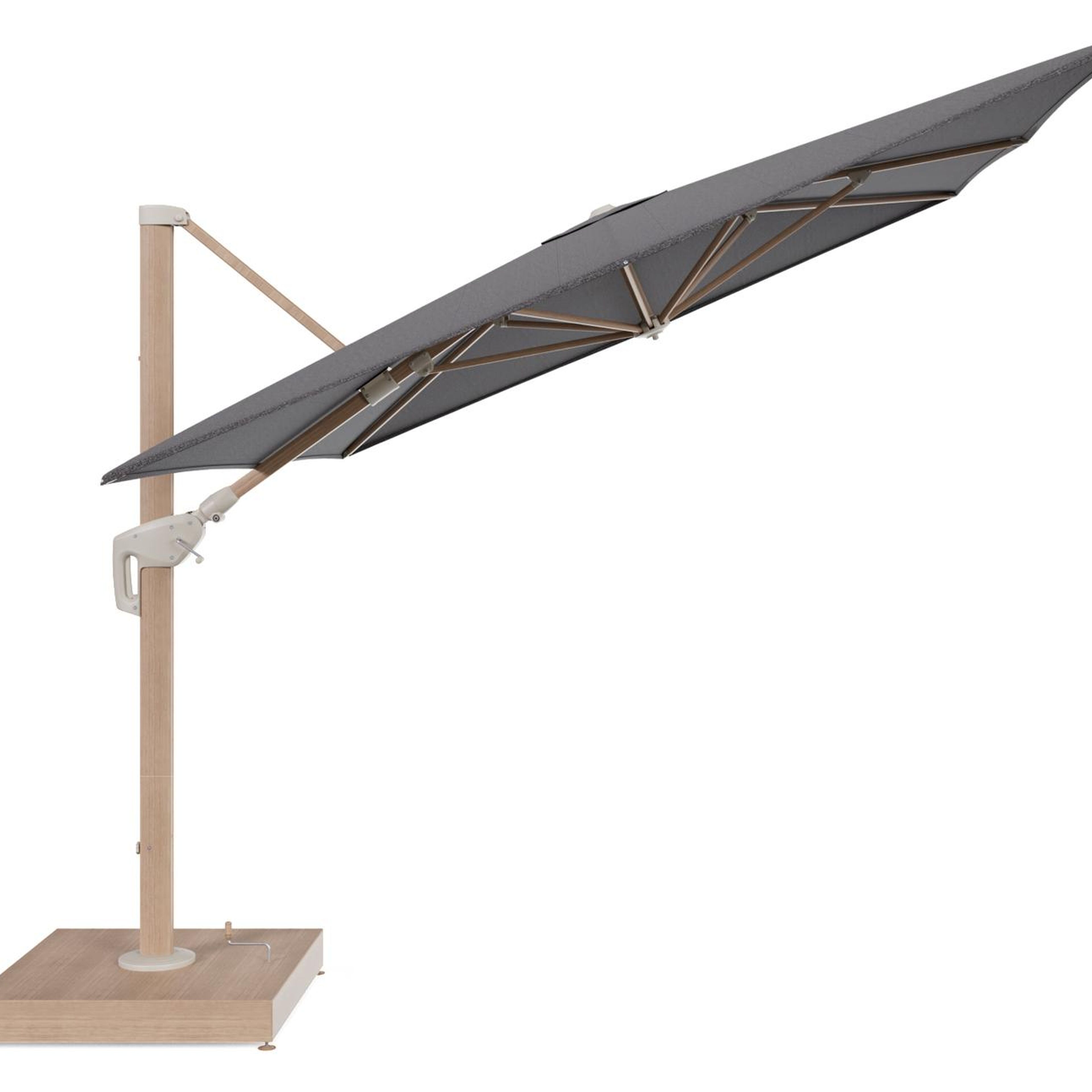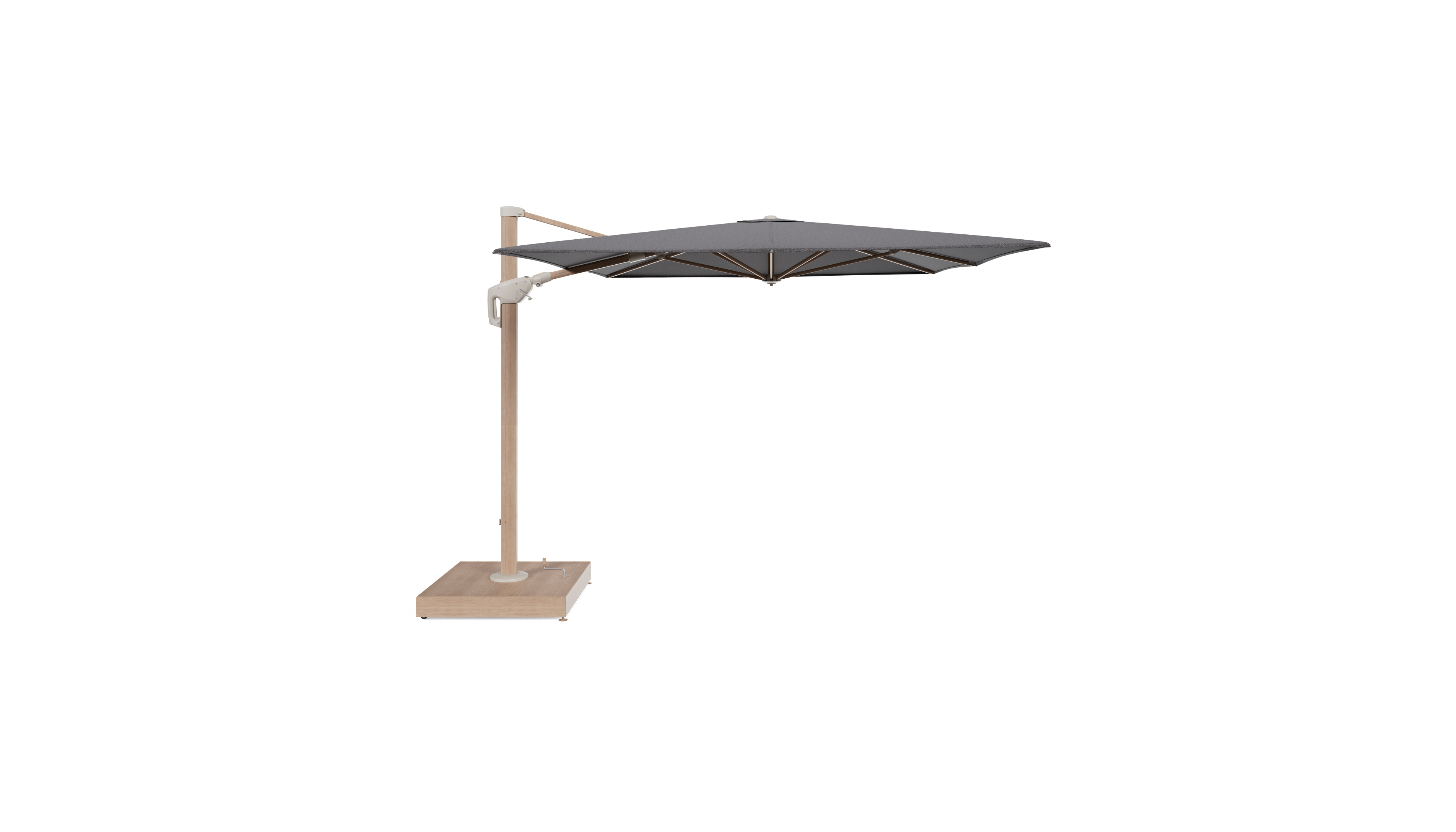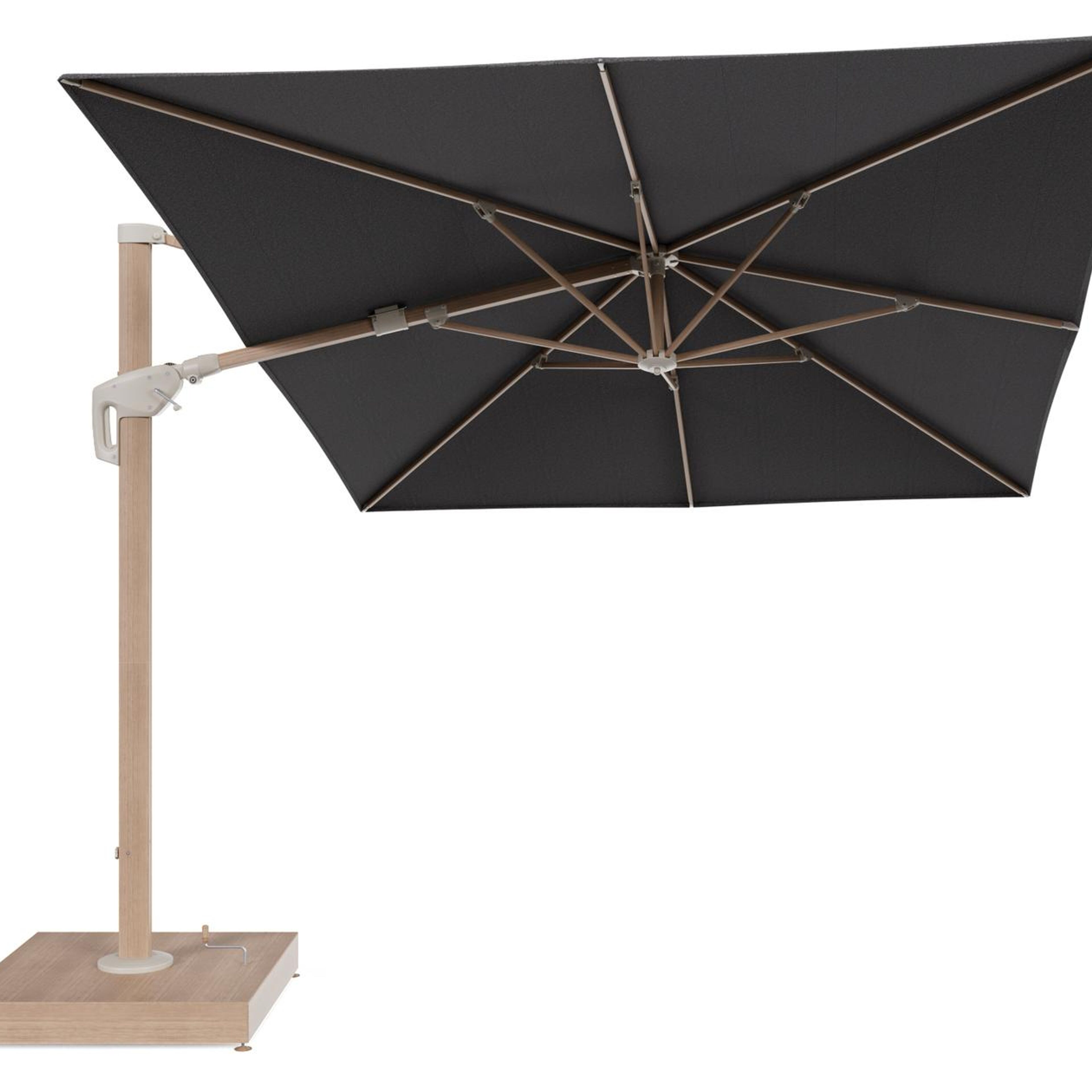 Minore zweefparasol met tiltfunctie in houtlook aluminium en Firenze Tunder All Weather Solica parasoldoek - L1 400 x L2 300 cm met parasolvoet Minore 260 kg met wielen | Exterioo tuinmeubelen