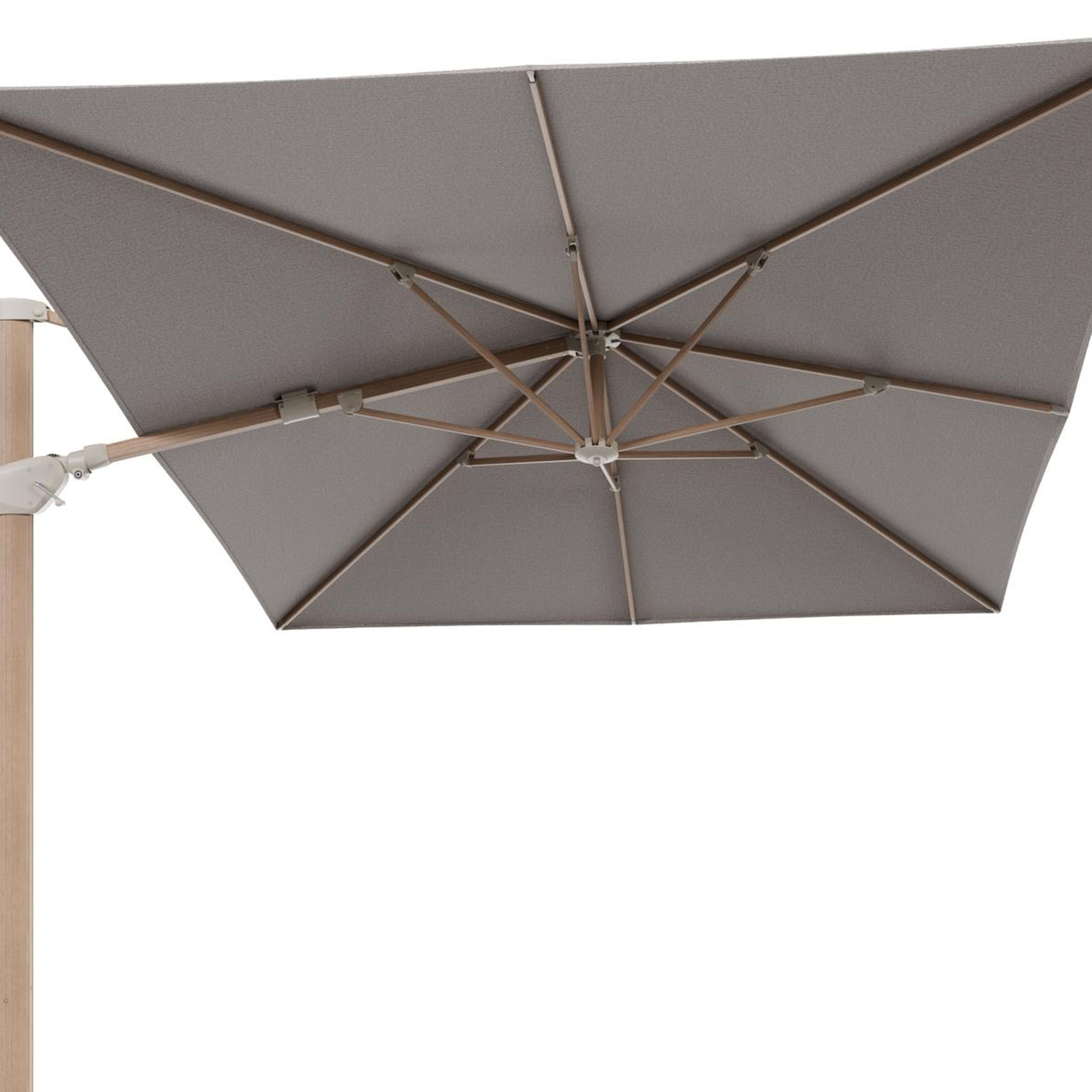 Minore zweefparasol met tiltfunctie in houtlook aluminium en Wander Granite All Weather Sunbrella® Luxe parasoldoek - L1 400 x L2 300 cm (zonder voet) | Exterioo tuinmeubelen