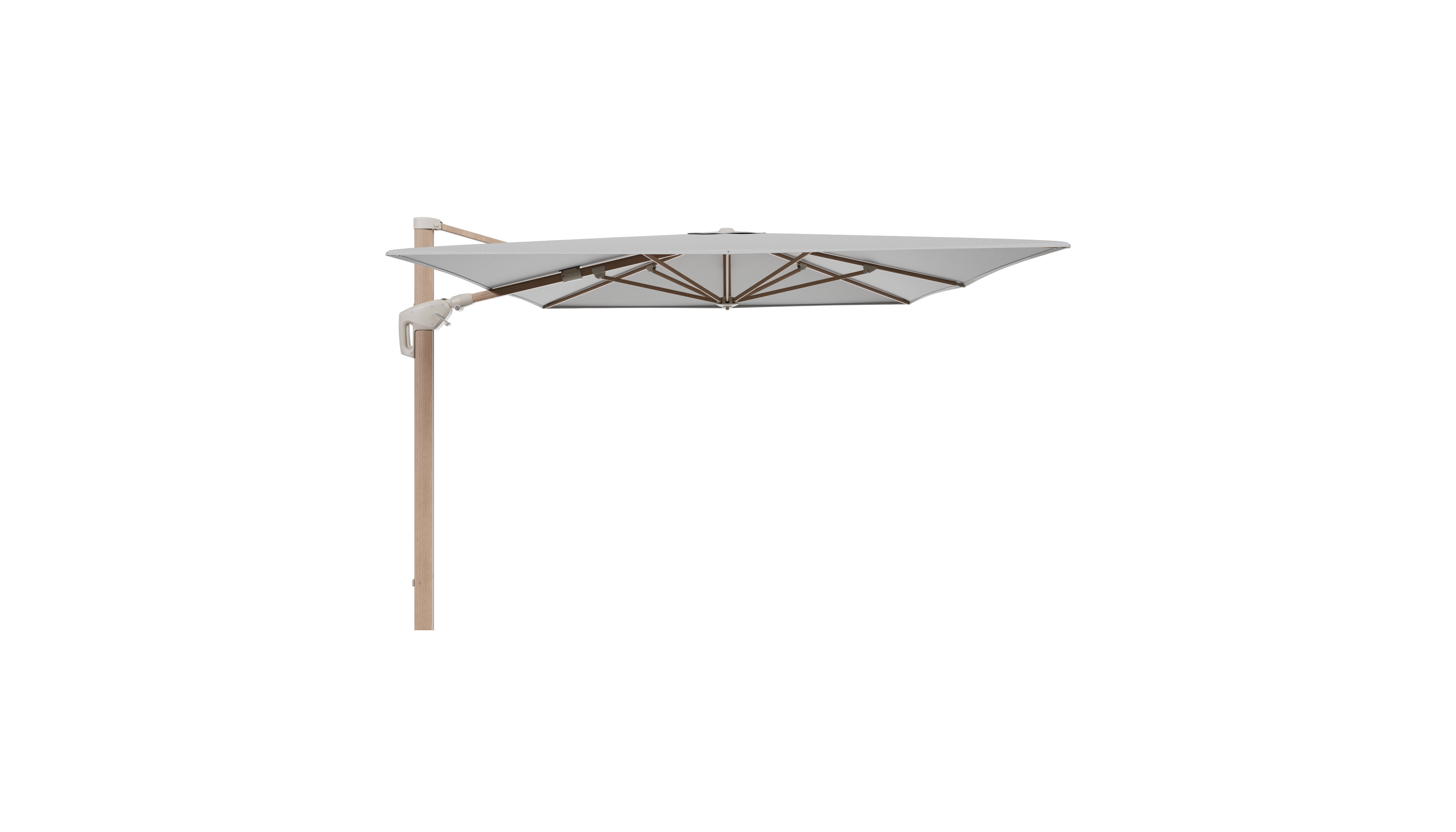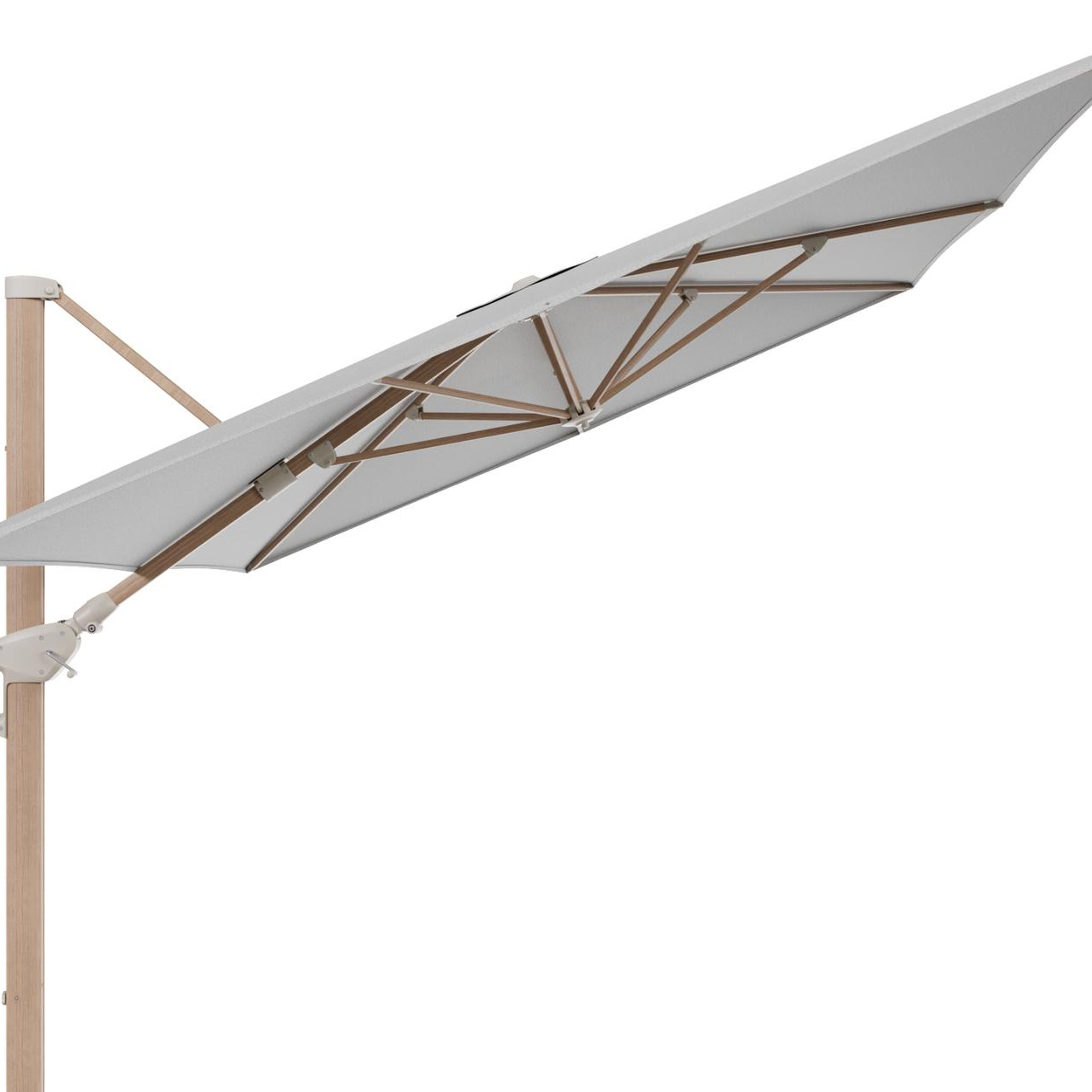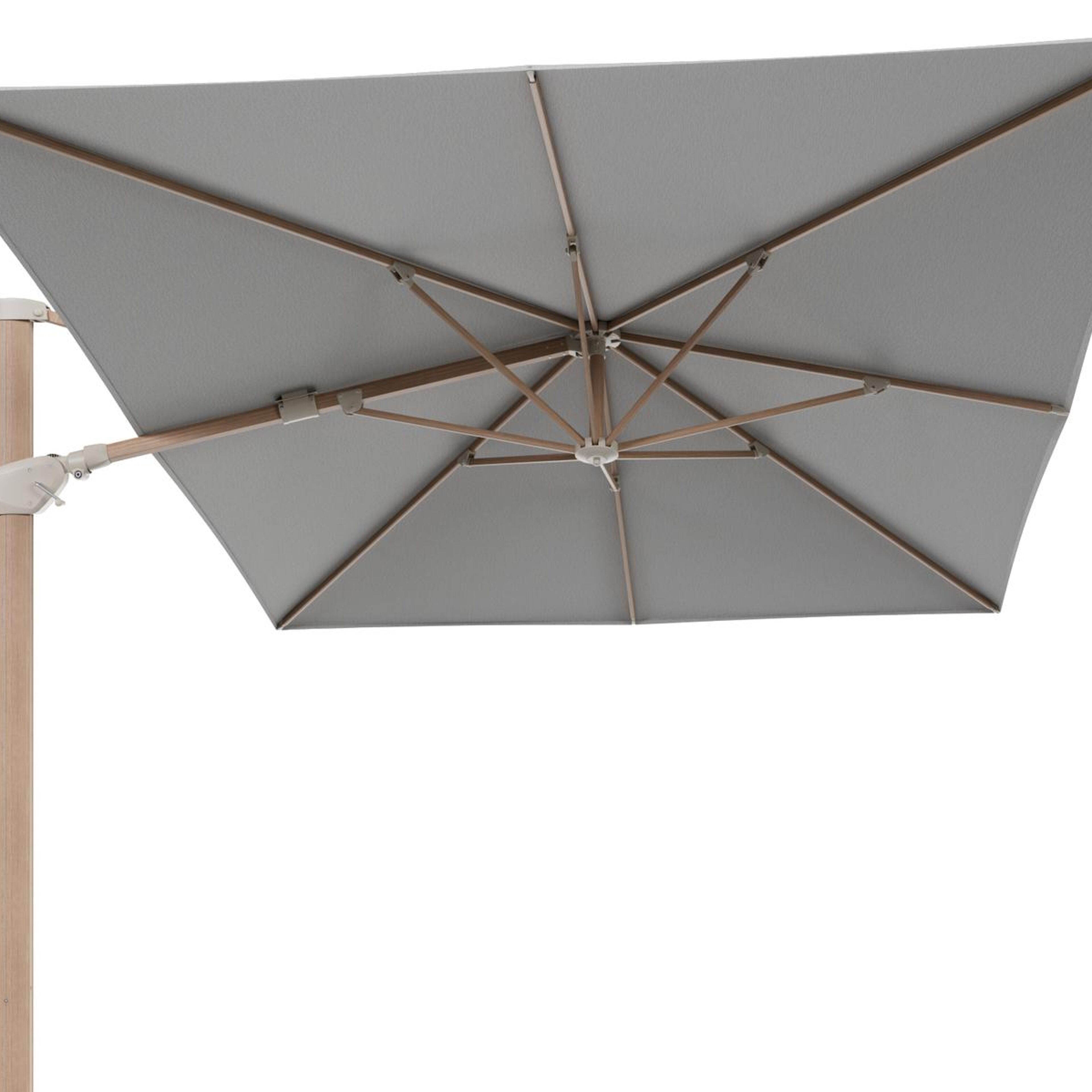 Minore zweefparasol met tiltfunctie in houtlook aluminium en Savane Nimbus All Weather Sunbrella® Luxe parasoldoek - L1: 400 x L2: 300 cm (zonder voet) | Exterioo tuinmeubelen