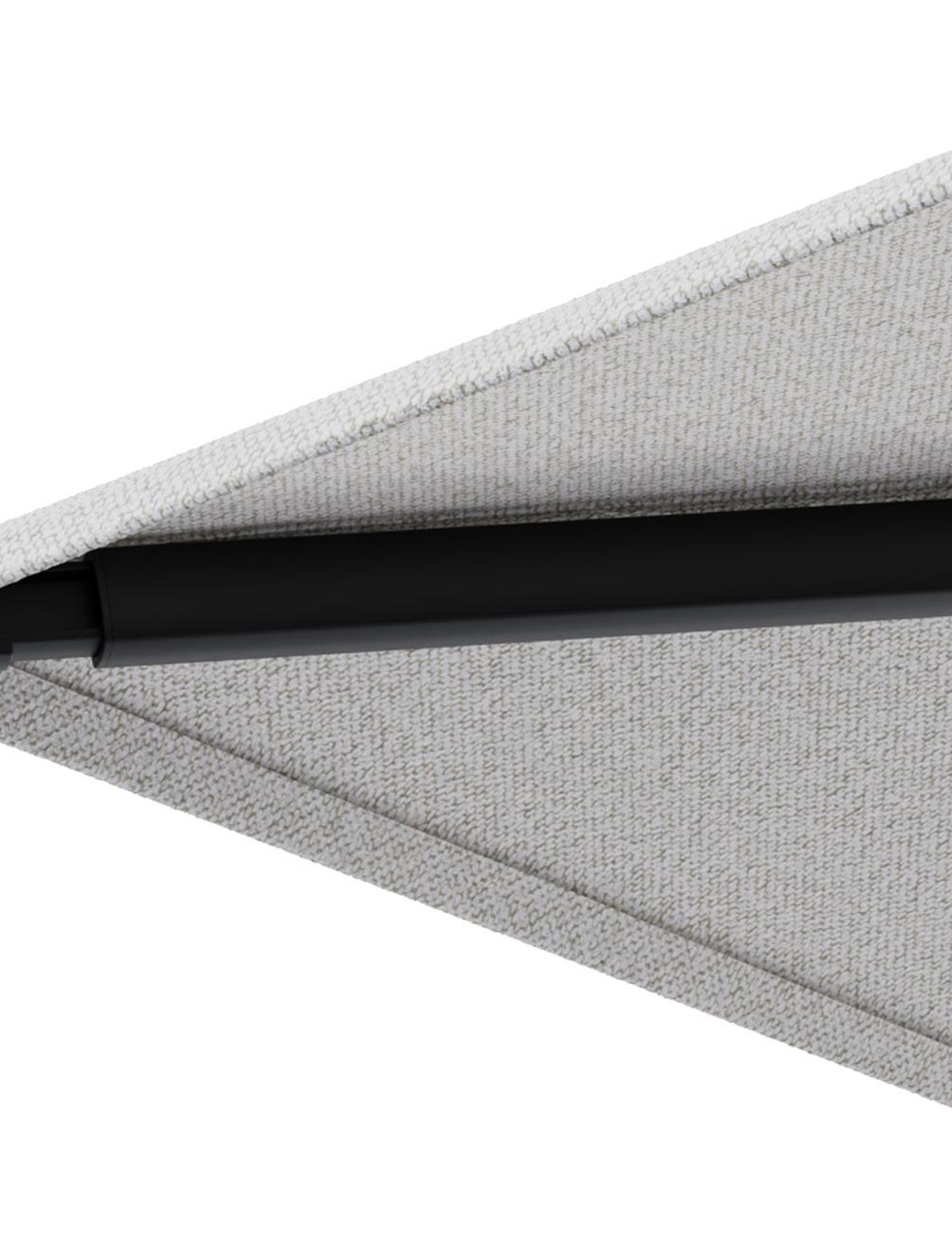 Het frame van de parasol is gemaakt uit roestvrij aluminium. Dit sterke en onderhoudsvriendelijke materiaal zorgt voor een stevige constructie en een moderne uitstraling.