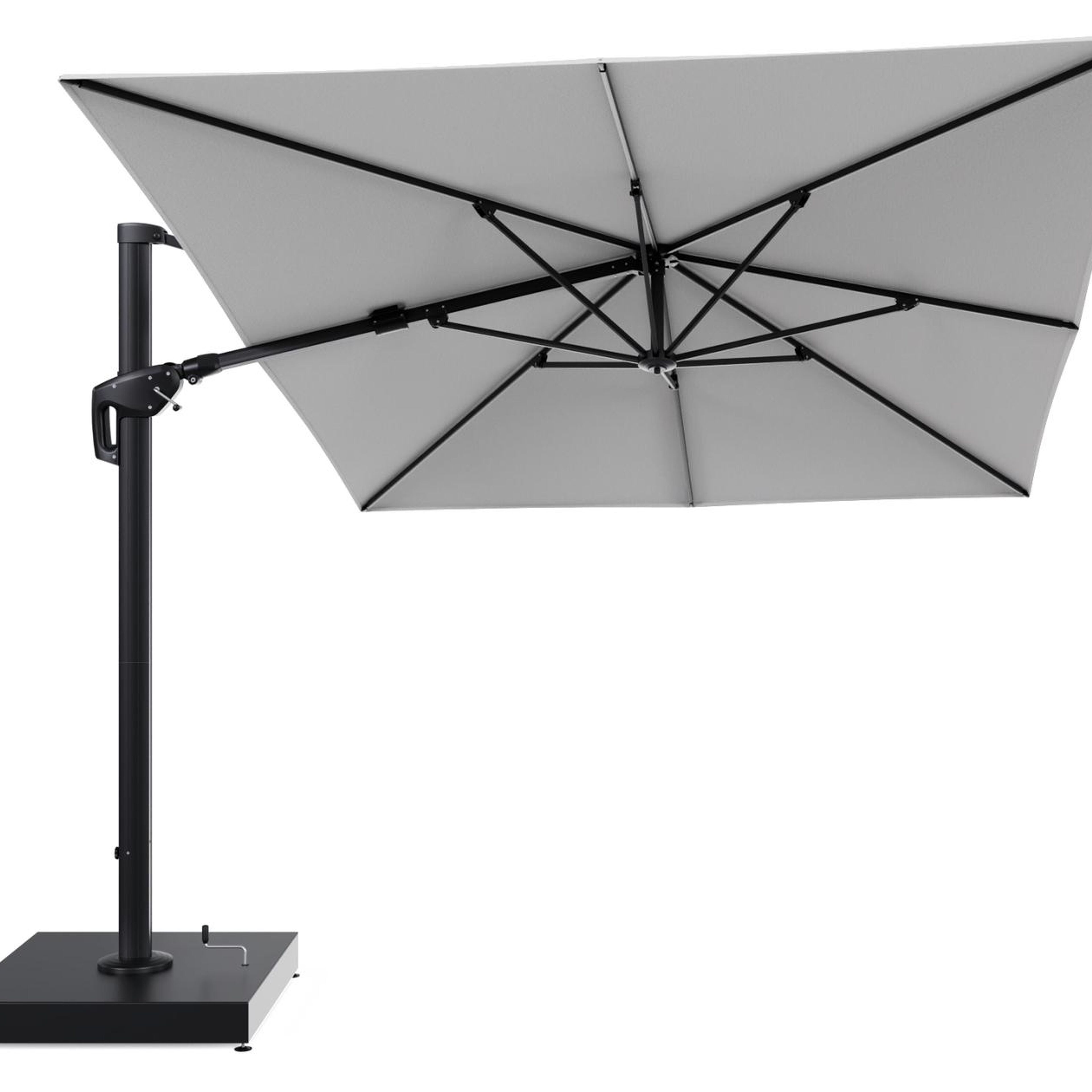 De parasol wordt geleverd met een 260 kg Minore aluminium parasolvoet. Deze stevige basis zorgt voor de nodige stabiliteit op je terras.