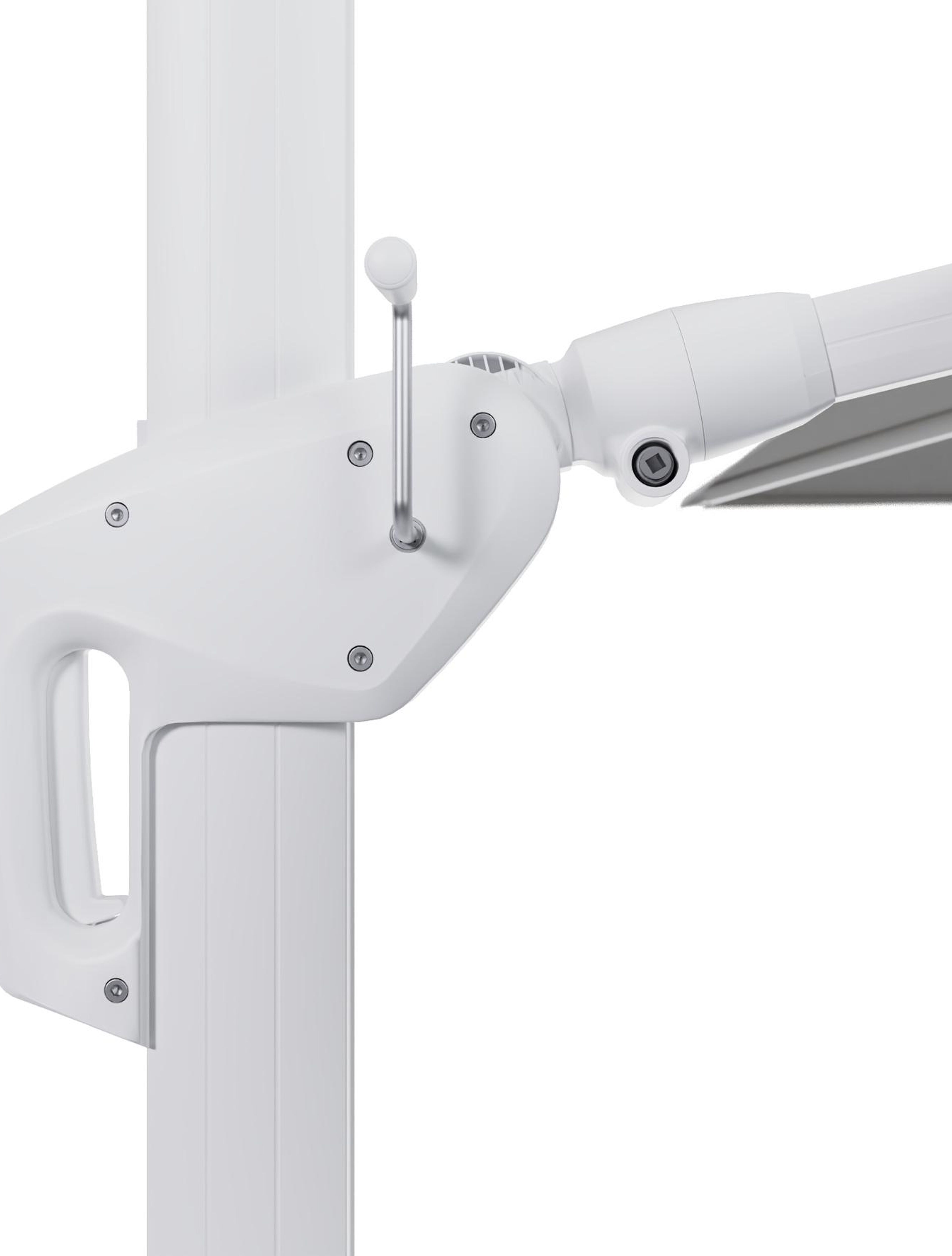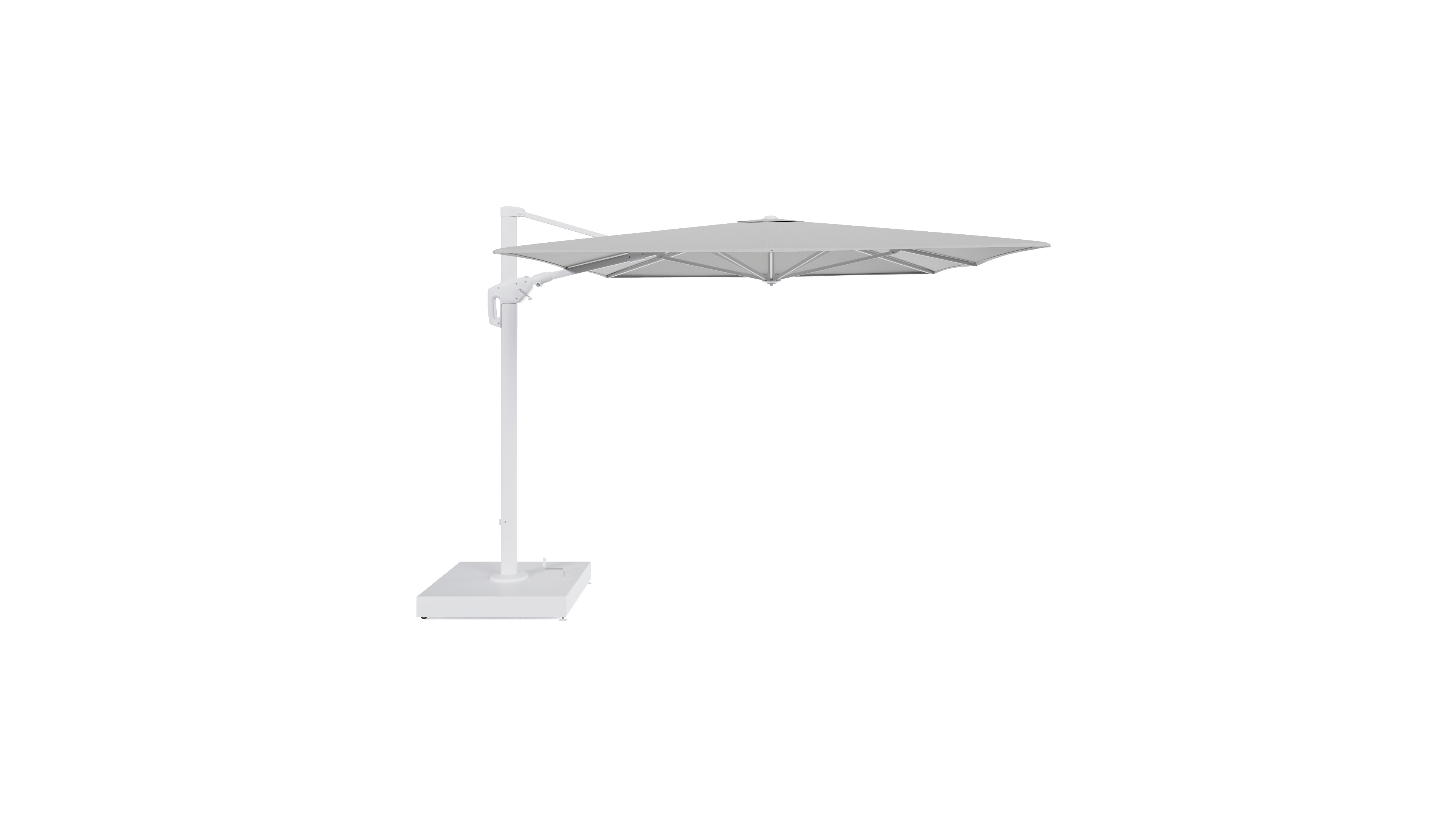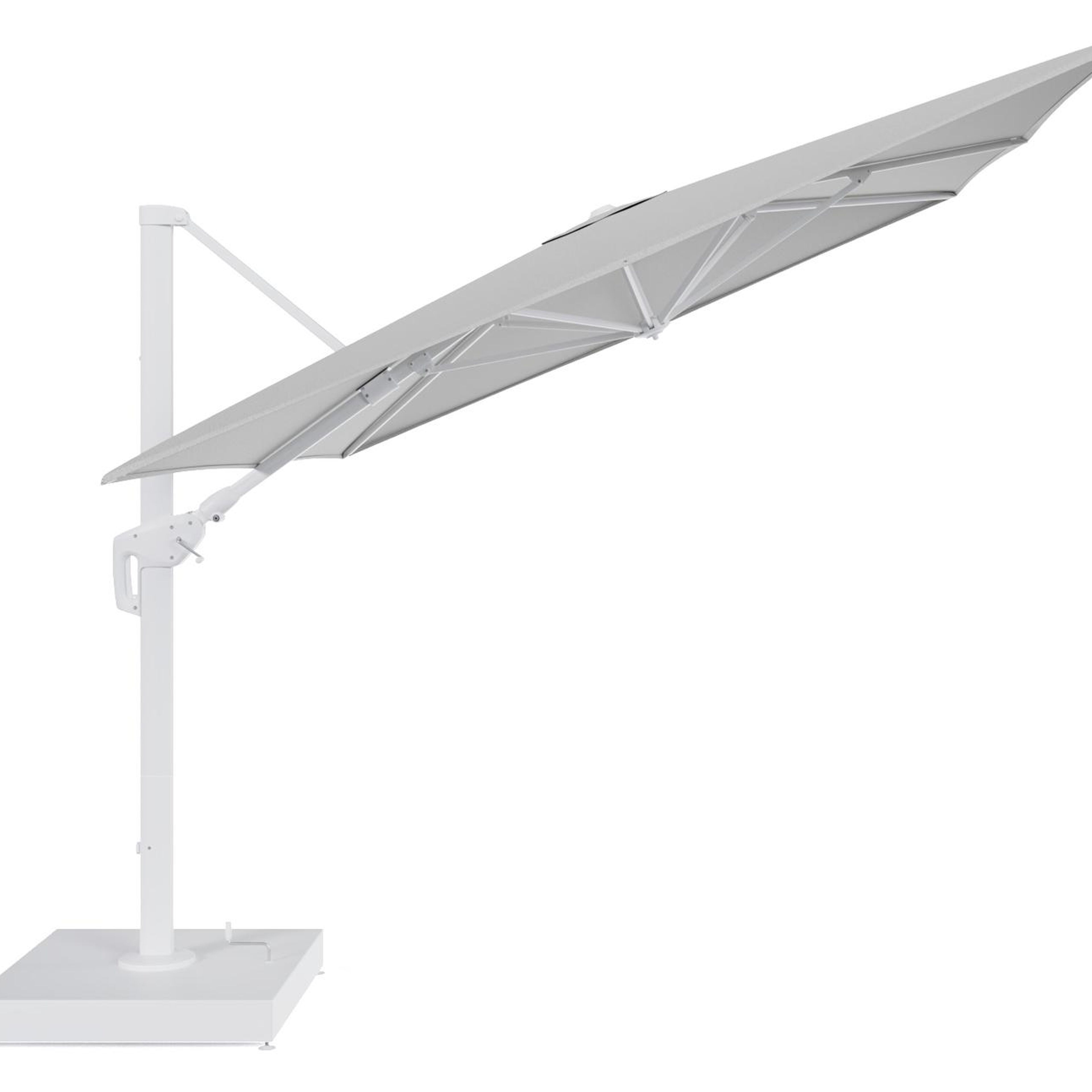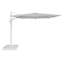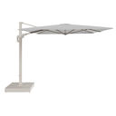 Minore zweefparasol met tiltfunctie in wit aluminium en All Weather Sunbrella Luxe Savane Nimbus - L1 400 x L2 300 cm met parasolvoet Minore 260 kg met wielen | Exterioo tuinmeubelen