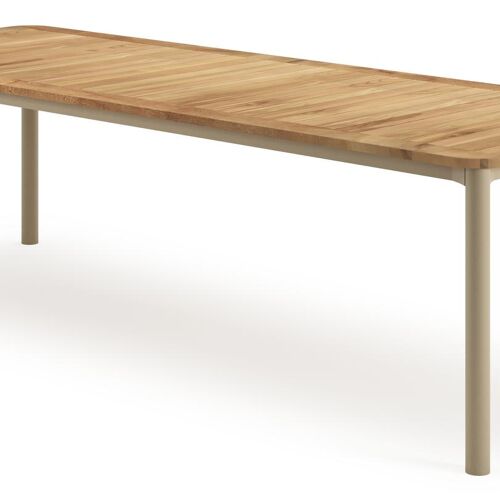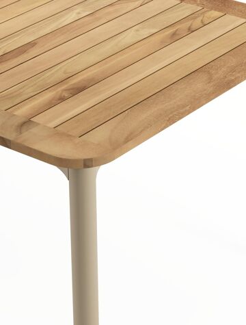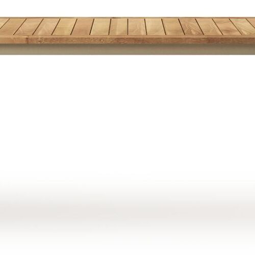 Een tafelblad uit teak staat gelijk aan bijzondere kwaliteit en natuurlijk design. Teak is een kwalitatieve houtsoort gekenmerkt door zijn hardheid. Aangezien hout leeft, kan de structuur of kleur licht anders zijn dan op het beeld weergegeven.
