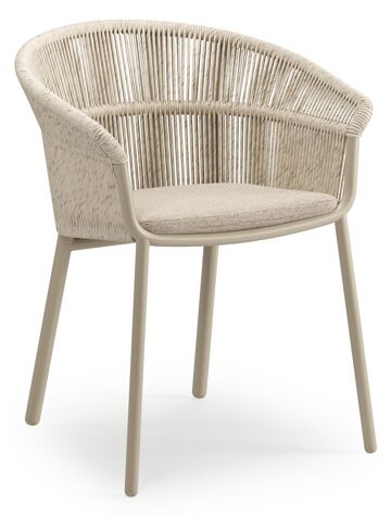 De Matera tuinstoel is een robuuste en ruime stoel met een hedendaagse uitstraling. Het frame is gemaakt uit roestvrij aluminium. De kuip is afgewerkt met wicker, een gevlochten kunststof die sterk en onderhoudsvriendelijk is. De zitting is gemaakt uit stevige textilene. De stoel is stapelbaar en dus makkelijk op te bergen. De stoelkussens zijn inbegrepen en gemaakt uit Weather+ Softtouch. De duurzame kussens voelen zacht aan en zijn vuilafstotend. Weather+ Softtouch kussens zijn beperkt waterafstotend. In de winter of bij langdurige regen bewaar je de kussens best binnen.