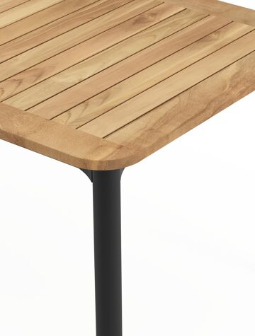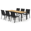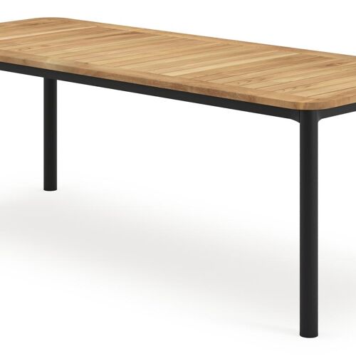 Mira rechthoekige afgeronde tuinset in zwart aluminium en teak natural finish met 8 Calobra tuinstoelen | Exterioo