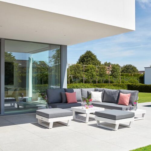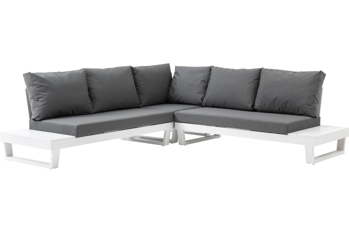 MODICA LOUNGE SET WHITE CORNER+2-S LEFT+ 2-S RIGHT+ TEXT CUSH GREY | Exterioo