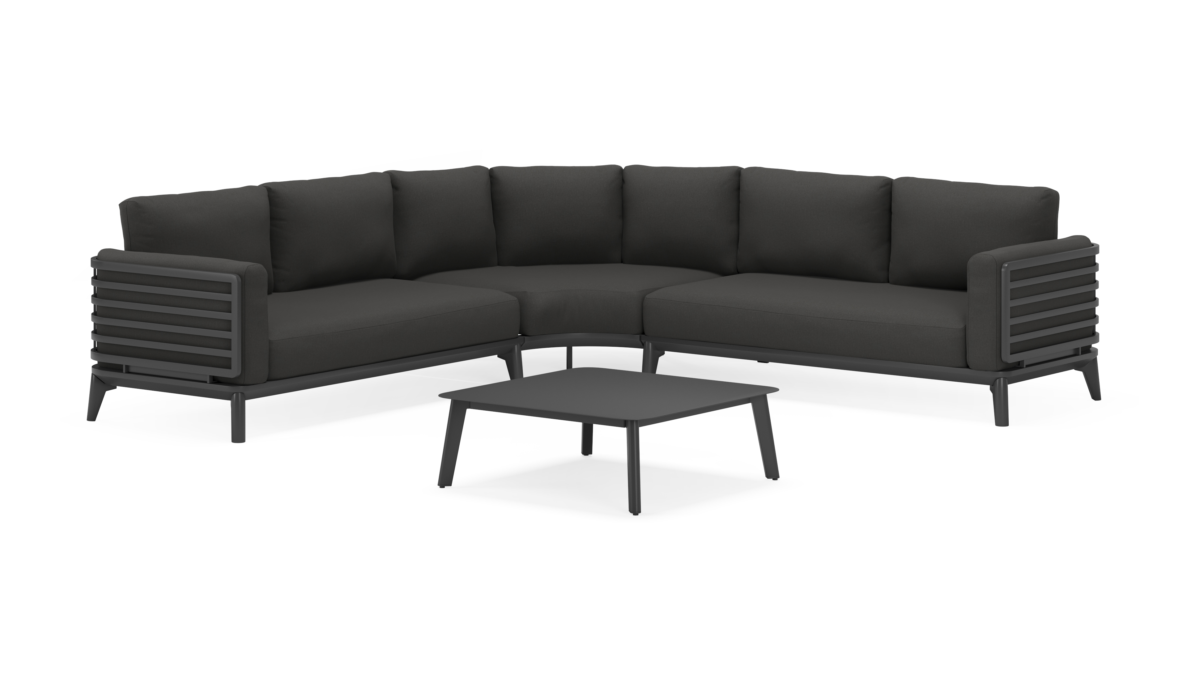 De loungetafel is inbegrepen en volledig gemaakt uit roestvrij aluminium.