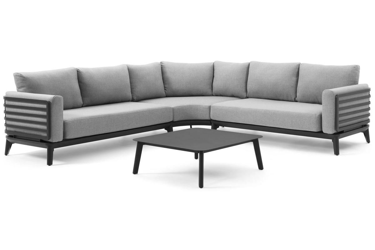 De loungetafel is inbegrepen en volledig gemaakt uit roestvrij aluminium.