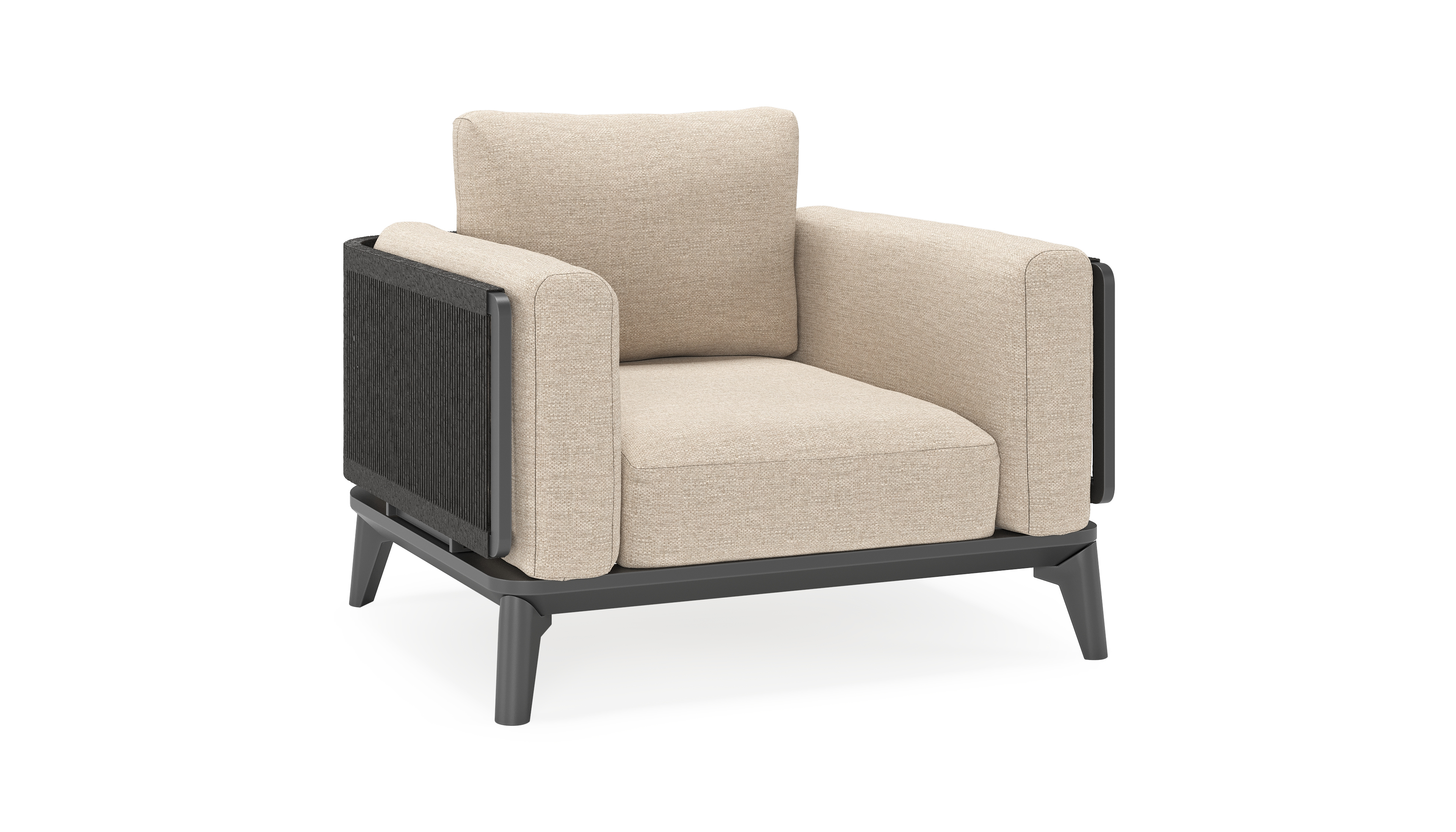 De Mosa lounge brengt binnen naar buiten. Gemaakt van hoogwaardige rope en een gestroomlijnd aluminium frame, combineert deze moderne lounge moeiteloos stijl met functionaliteit. Zo zijn de armleuningen ook voorzien van een comfortabel kussen.