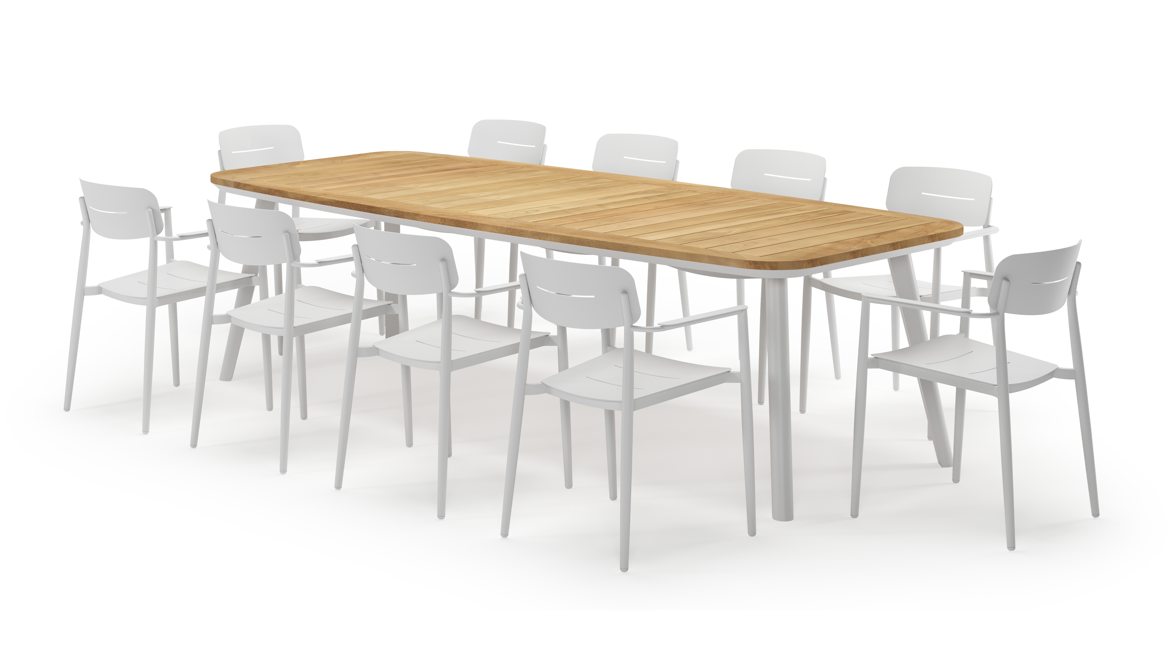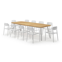 De Mosa tuinset herken je makkelijk aan het afgerond rechthoekig tafelblad en de naar buiten afgeschuinde poten. De tafel heeft een moderne look met een elegante touch.