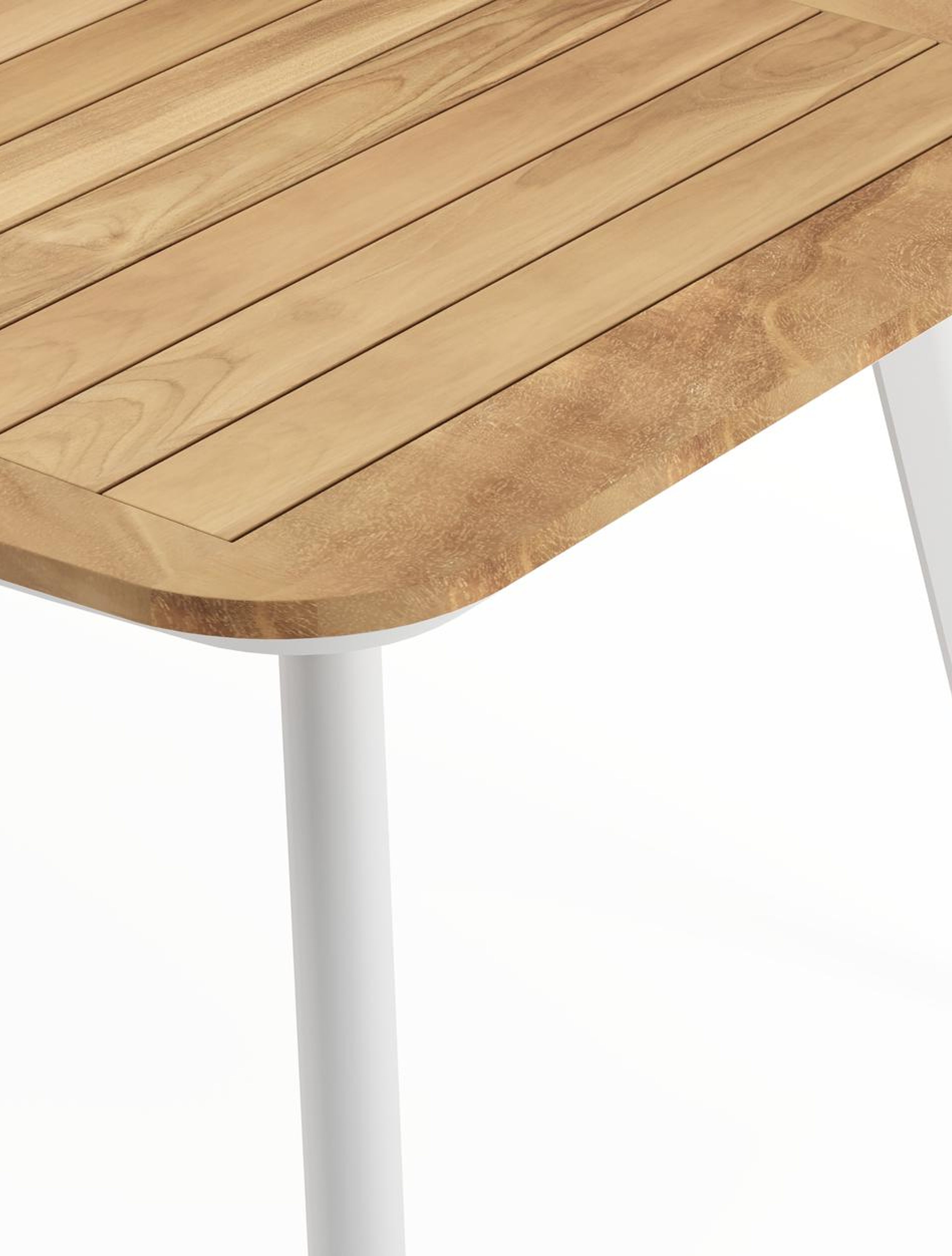 Een tafelblad uit teak staat gelijk aan bijzondere kwaliteit en natuurlijk design. Teak is een kwalitatieve houtsoort gekenmerkt door zijn hardheid. Aangezien hout leeft, kan de structuur of kleur licht anders zijn dan op het beeld weergegeven.