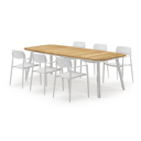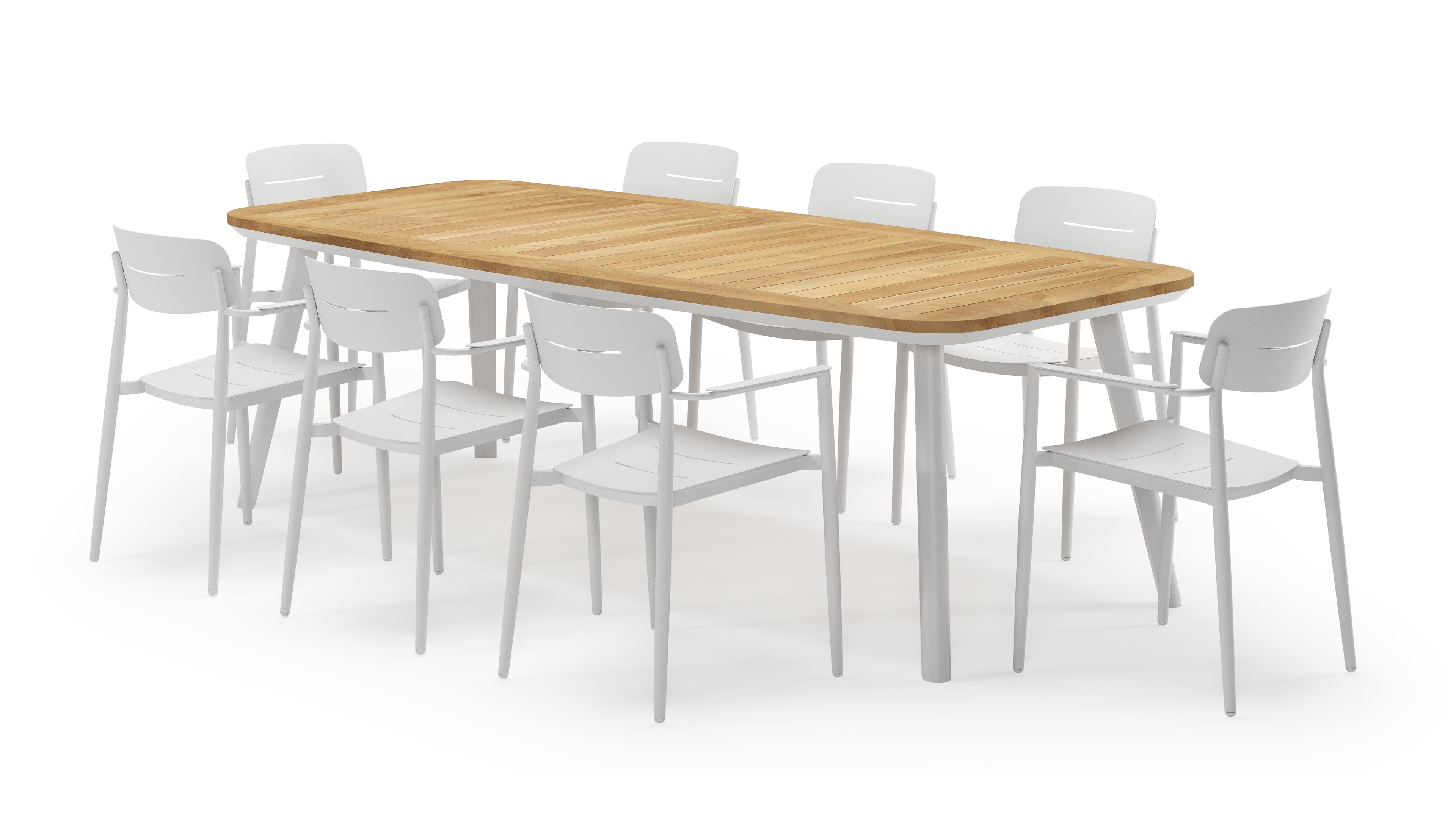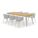 Mosa bootvormige tuinset in wit aluminium en teak natural finish met 8 Cosa tuinstoelen | Exterioo tuinmeubelen