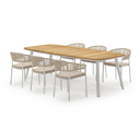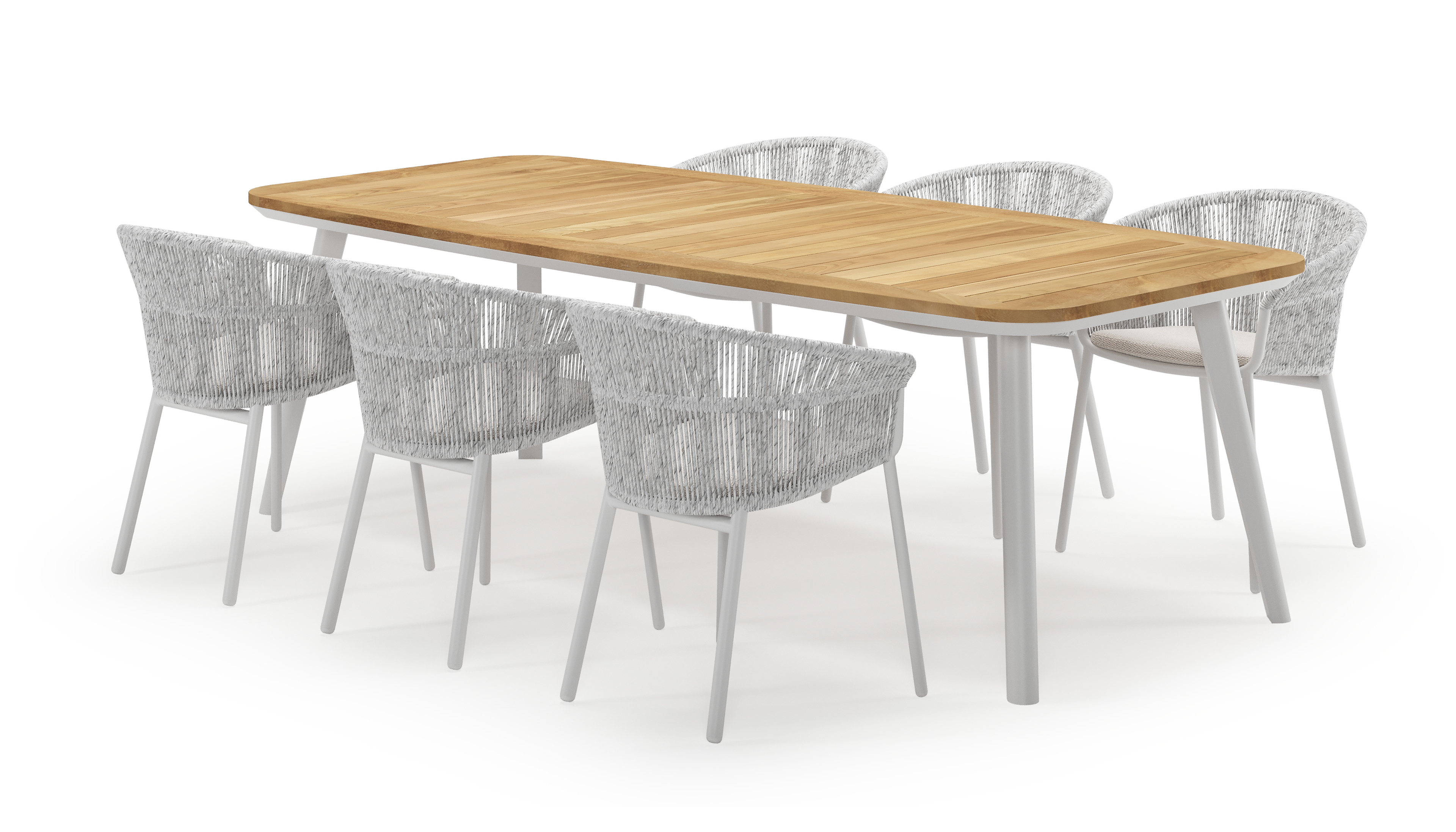 De Mosa tuinset herken je makkelijk aan het afgerond rechthoekig tafelblad en de naar buiten afgeschuinde poten. De tafel heeft een moderne look met een elegante touch.