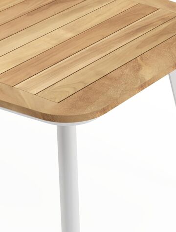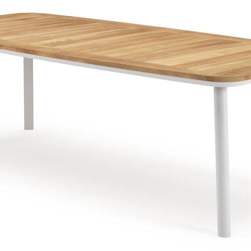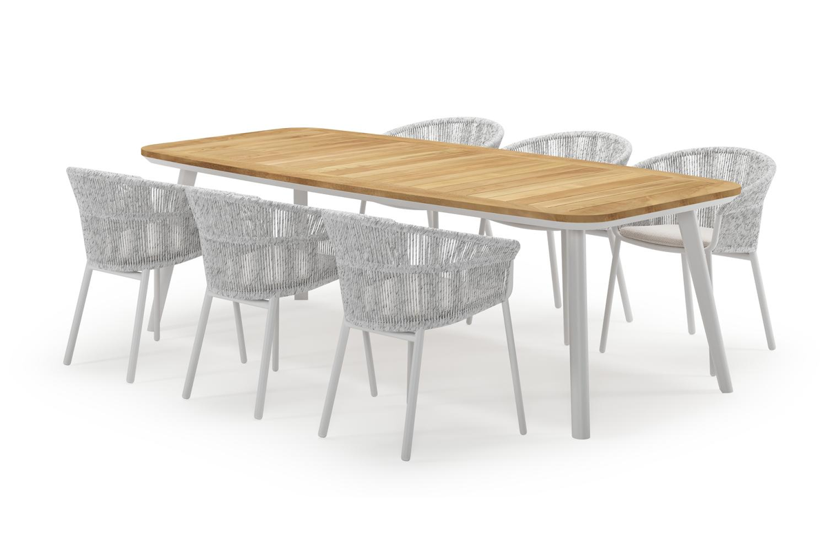 Mosa bootvormige tuinset in wit aluminium en teak natural finish met 6 Matera tuinstoelen | Exterioo