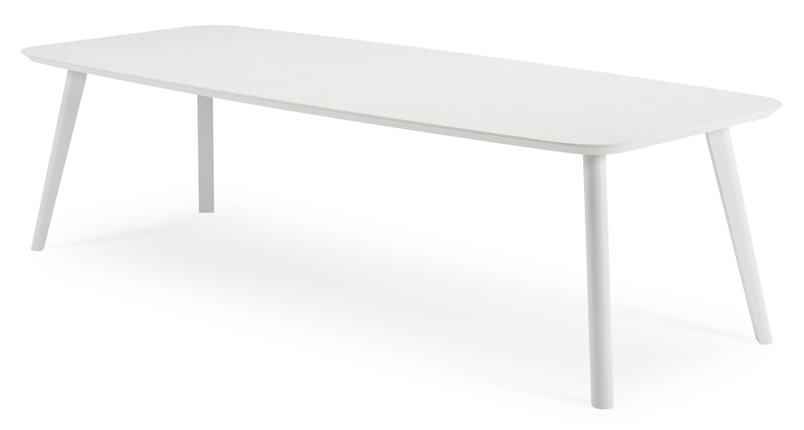 Mosa tuintafel bootvorm in wit aluminium en sintered stone Topo minerale - L 270 x B 115 x H 74 cm | Exterioo tuinmeubelen
