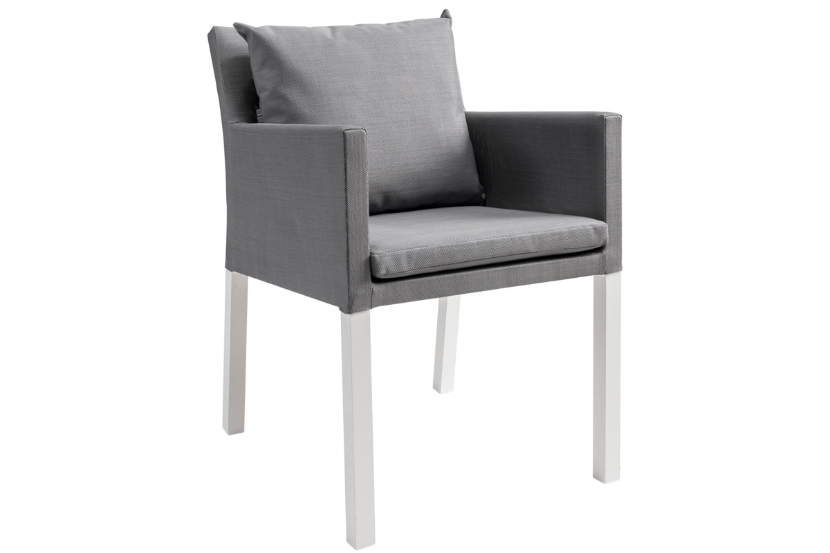 De Nano tuinstoel geeft een stijlvolle interieurlook in jouw tuin. Het frame is gemaakt van aluminium en is hierdoor roestvrij. De zitting (inclusief kussens) is gemaakt van textilene een weersbestendige stof. Deze stoel heeft een brede zitting en zit uiterst comfortabel omwille van de kussens.