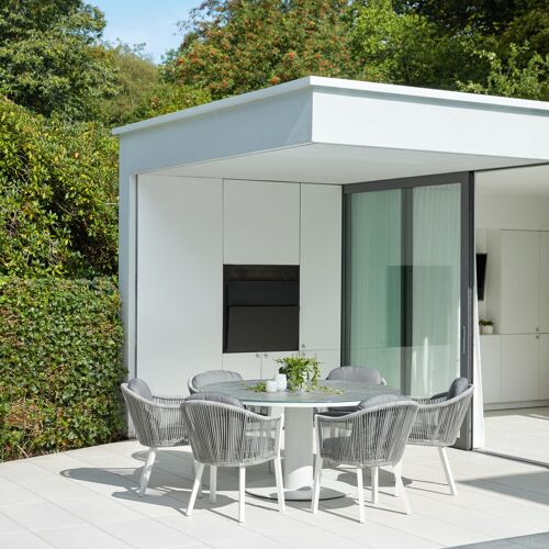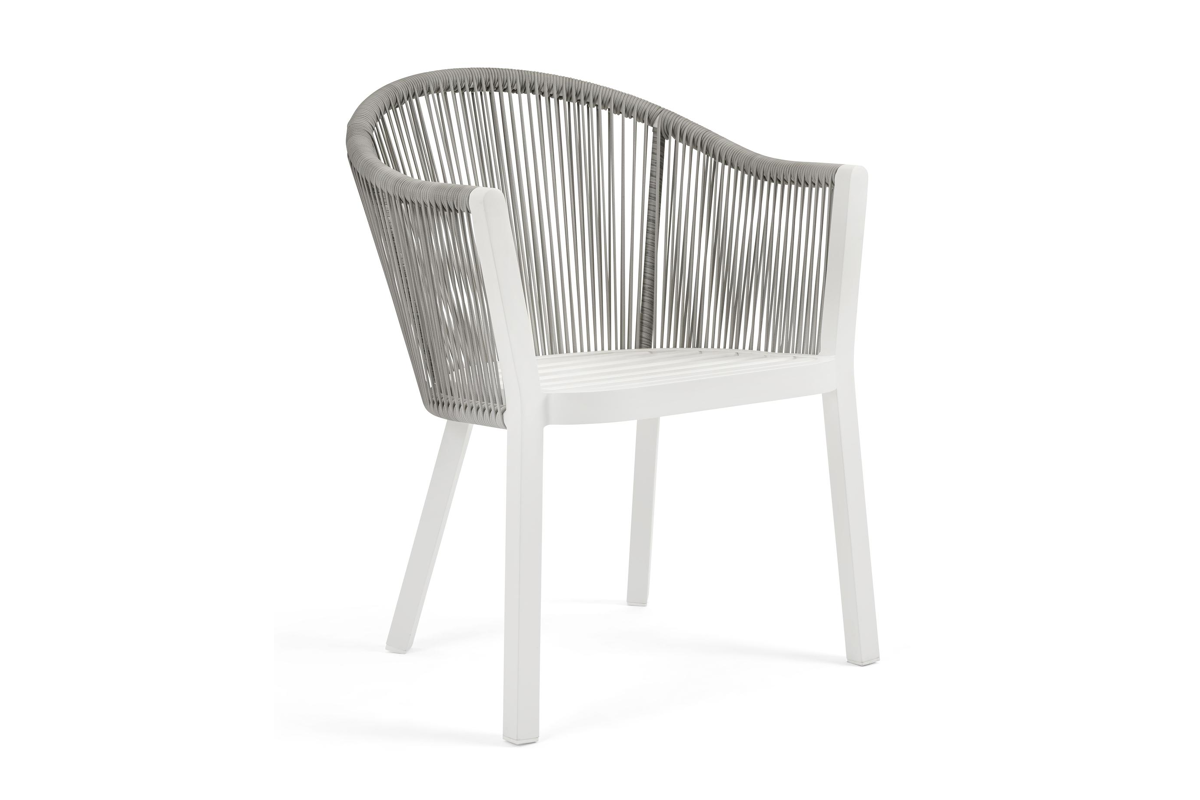 Nano tuinstoel in wit aluminium en grijs verticaal geweven rope | Exterioo