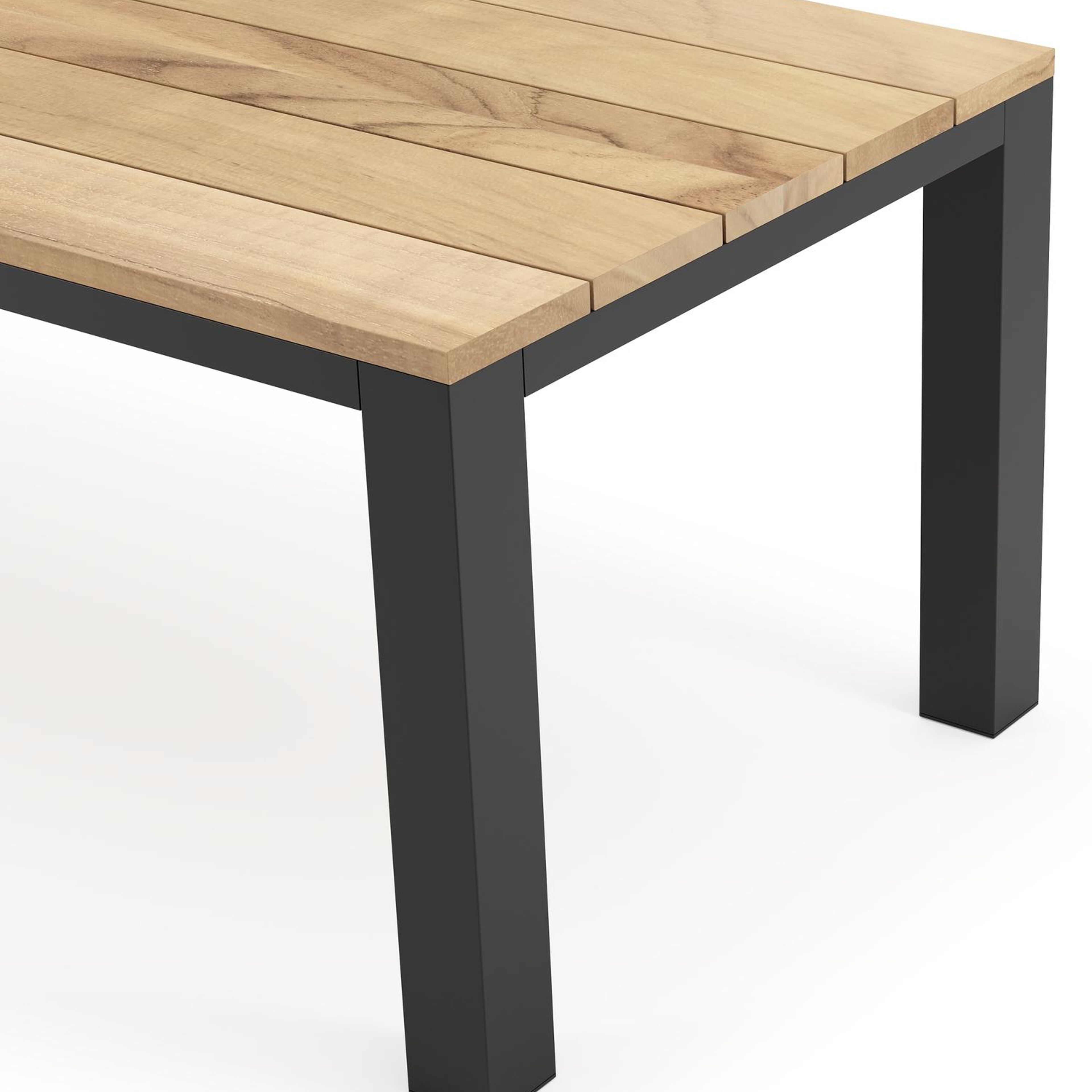 Een tafelblad uit teak staat gelijk aan bijzondere kwaliteit en natuurlijk design. Teak is een kwalitatieve houtsoort gekenmerkt door zijn hardheid. Aangezien hout leeft, kan de structuur of kleur licht anders zijn dan op het beeld weergegeven.