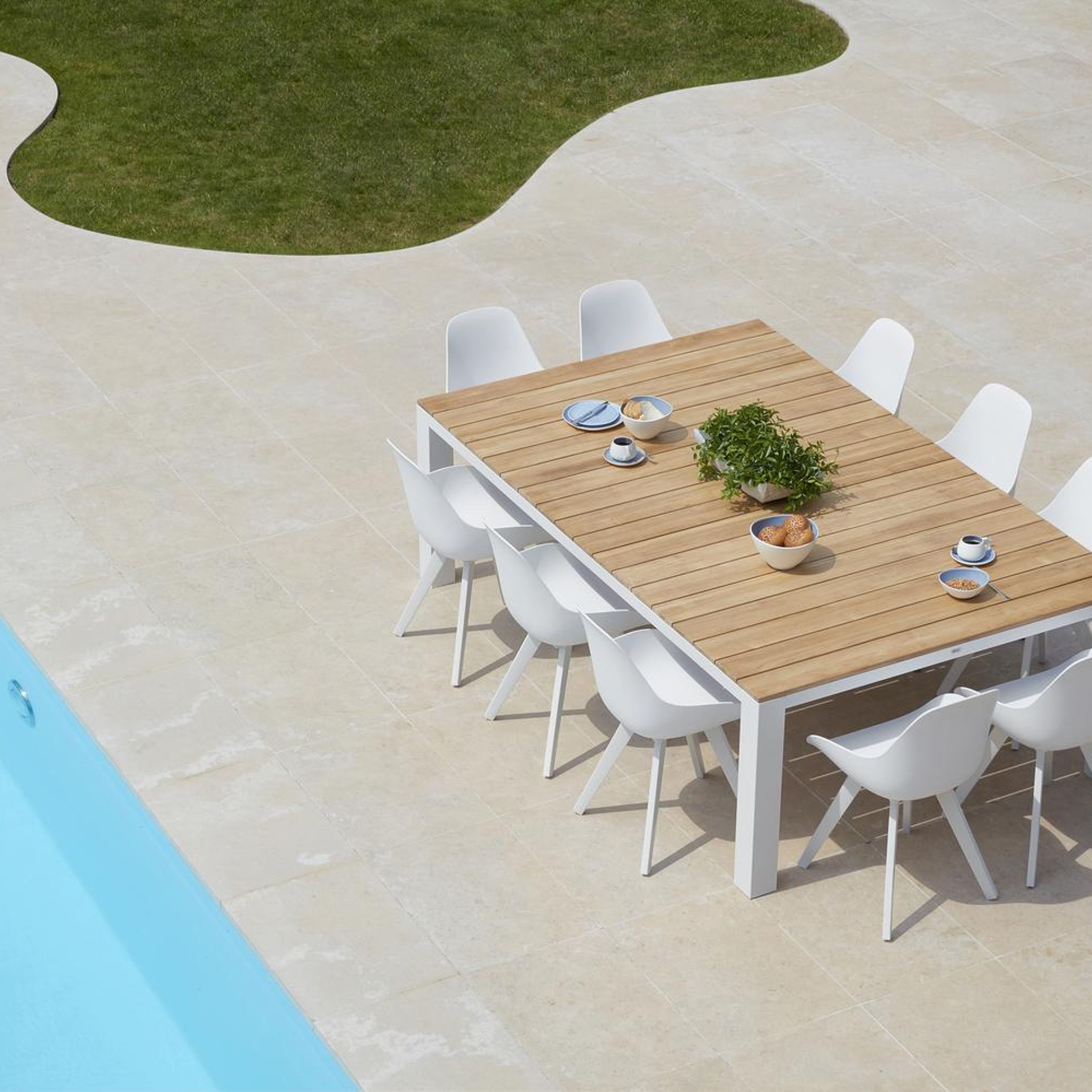 Nano tuintafel in wit aluminium en teak - L 240 x B 148 x H 75 cm | Exterioo tuinmeubelen