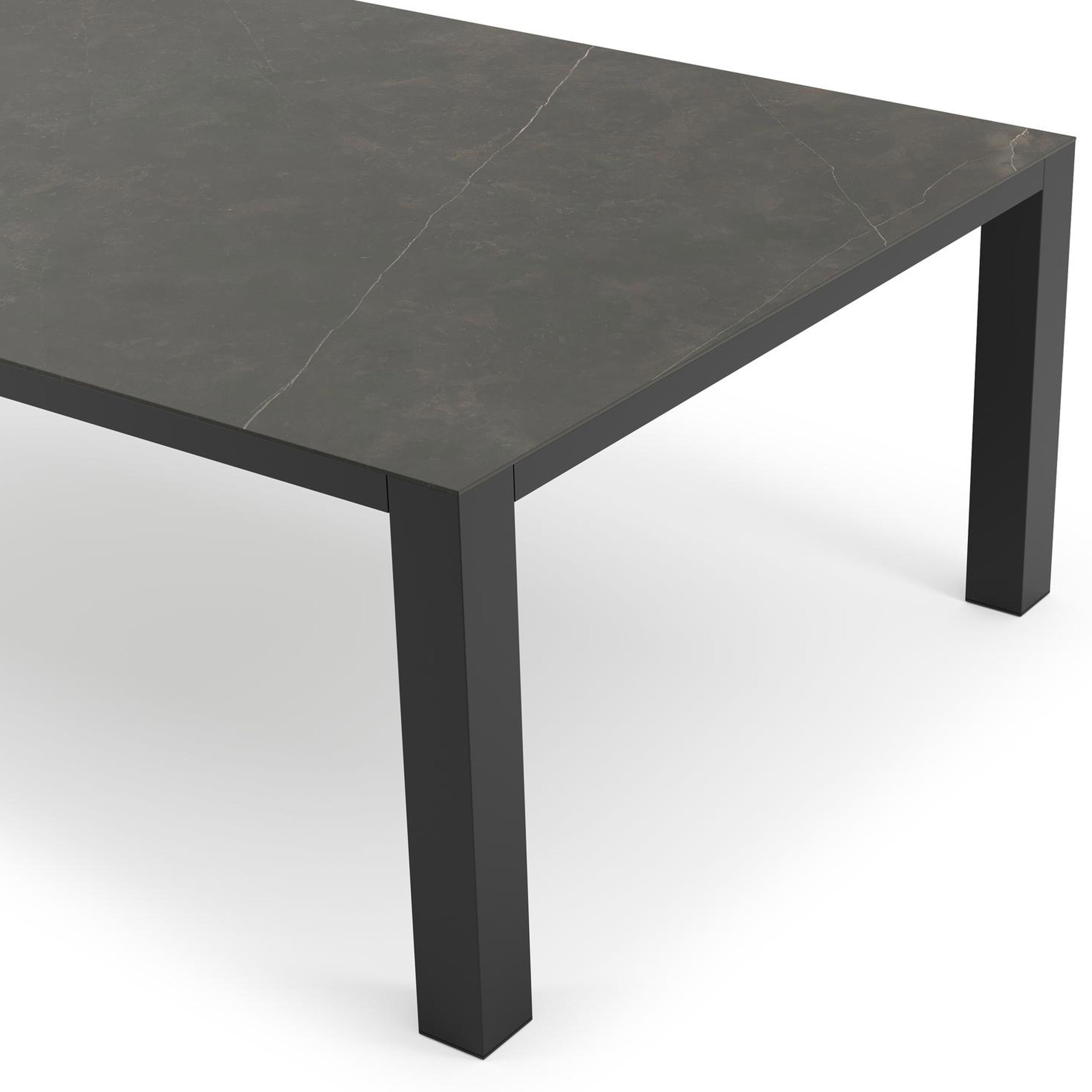 De Nano tuintafel weerspiegelt een robuuste vorm uit door de stevig blokvormig poten. Het strakke ontwerp past daarom perfect in een hedendaagse of moderne stijl.