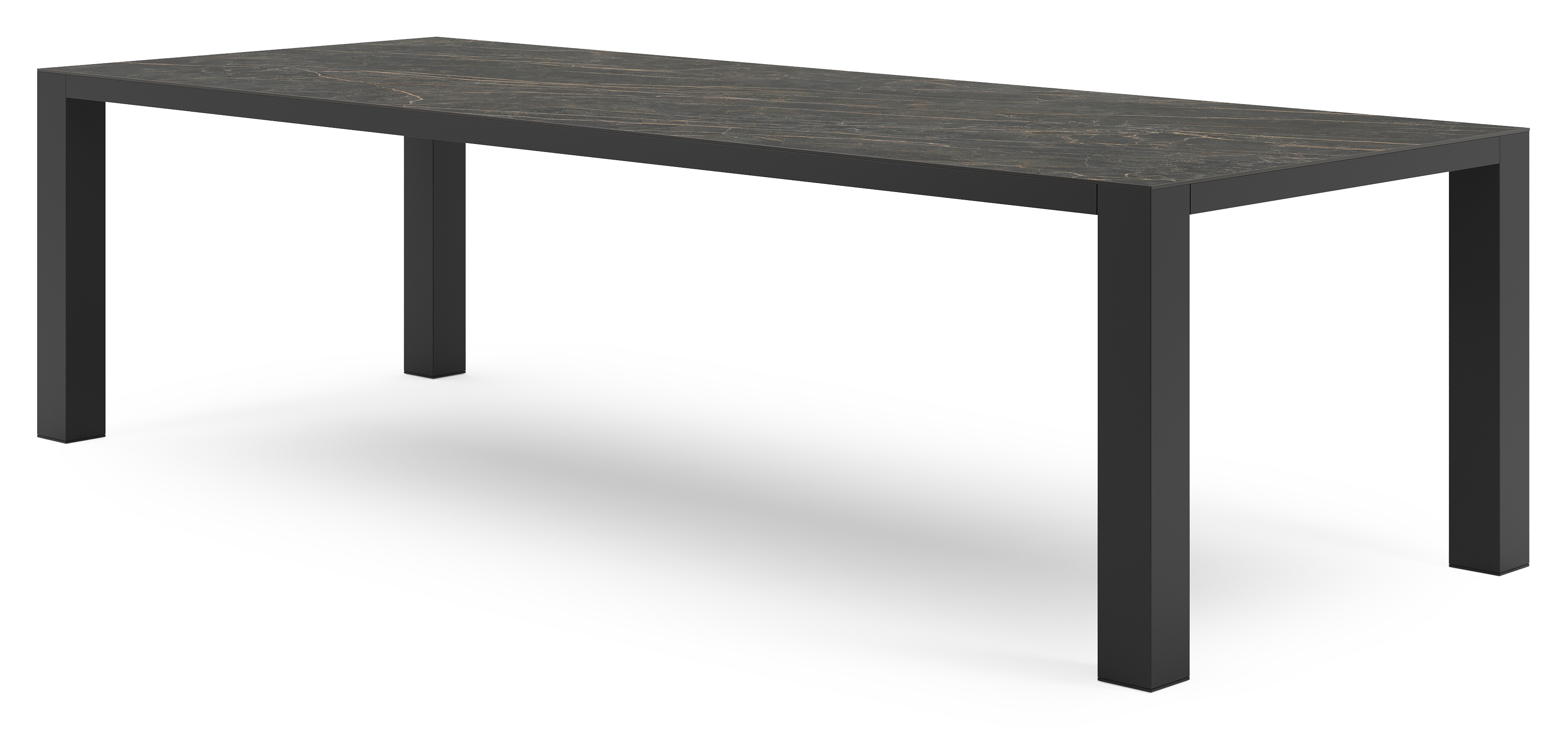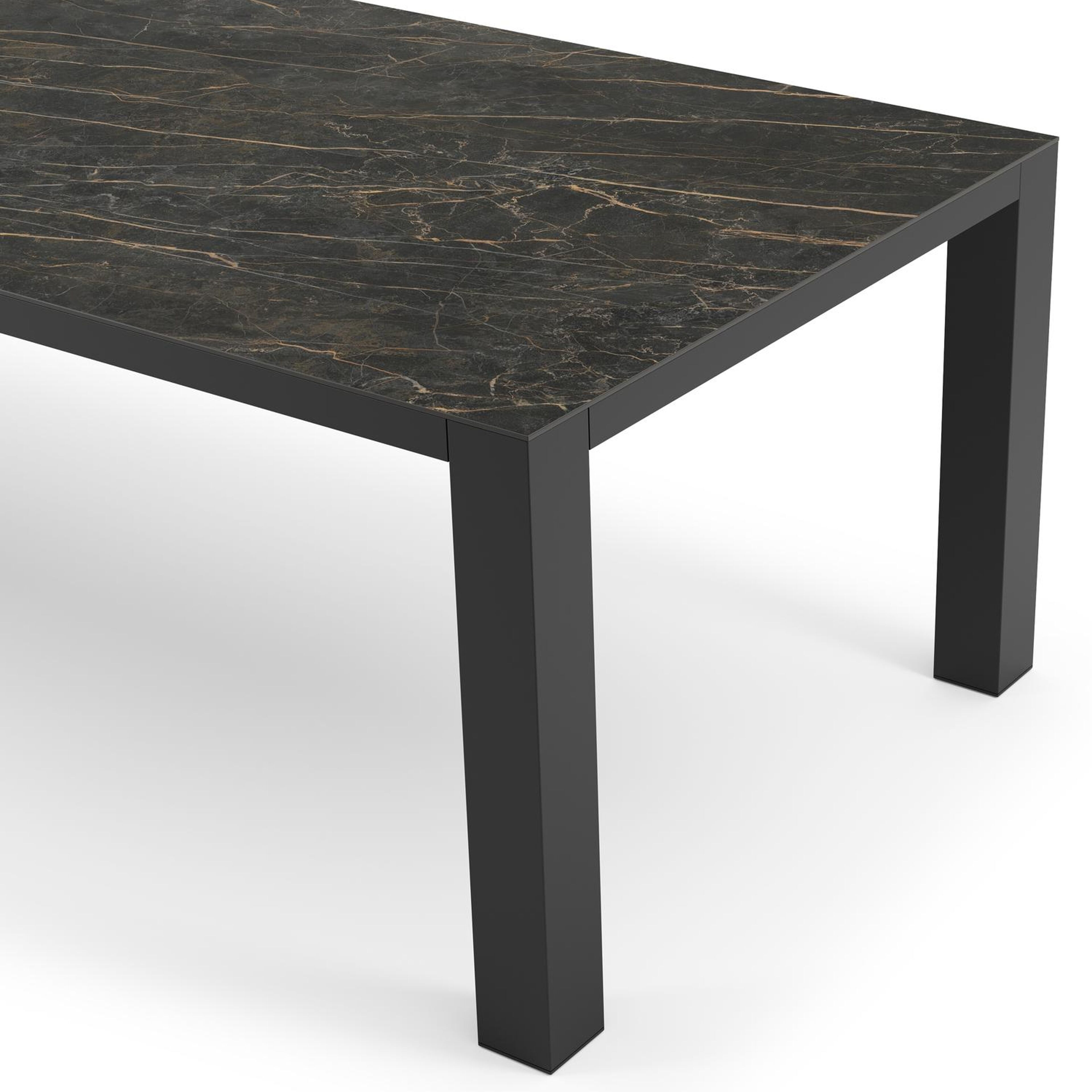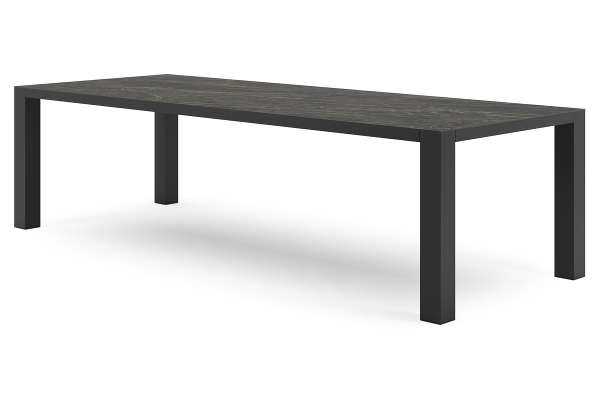 De Nano tuintafel weerspiegelt een robuuste vorm uit door de stevig blokvormig poten. Het strakke ontwerp past daarom perfect in een hedendaagse of moderne stijl.