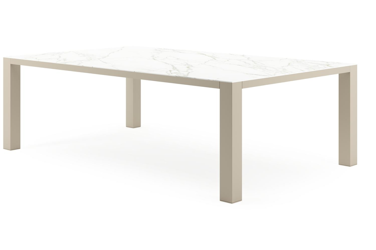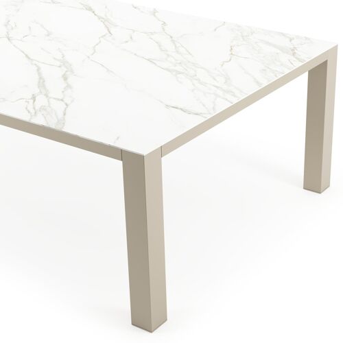 Nano XL tuintafel rechthoekig in beige aluminium en volkeramiek Calacatta - L 240 x B 148 x H 75 cm | Exterioo