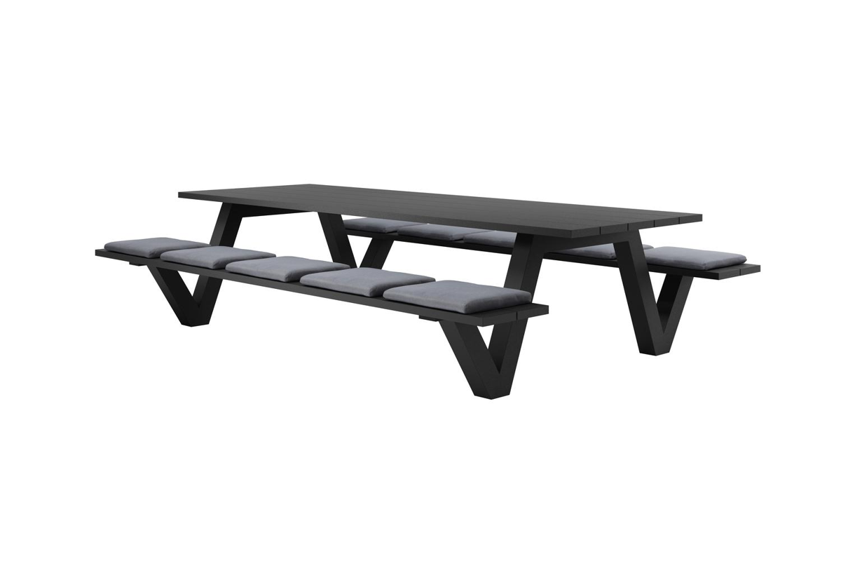 Norma picknicktafel in zwart aluminium - L 300 x B 213 x H 74 cm | Exterioo