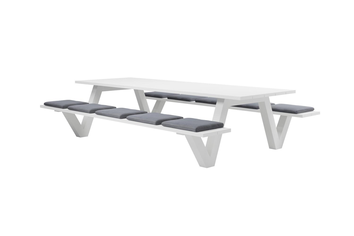 Norma picknicktafel in wit aluminium - L 300 x B 213 x H 74 cm | Exterioo