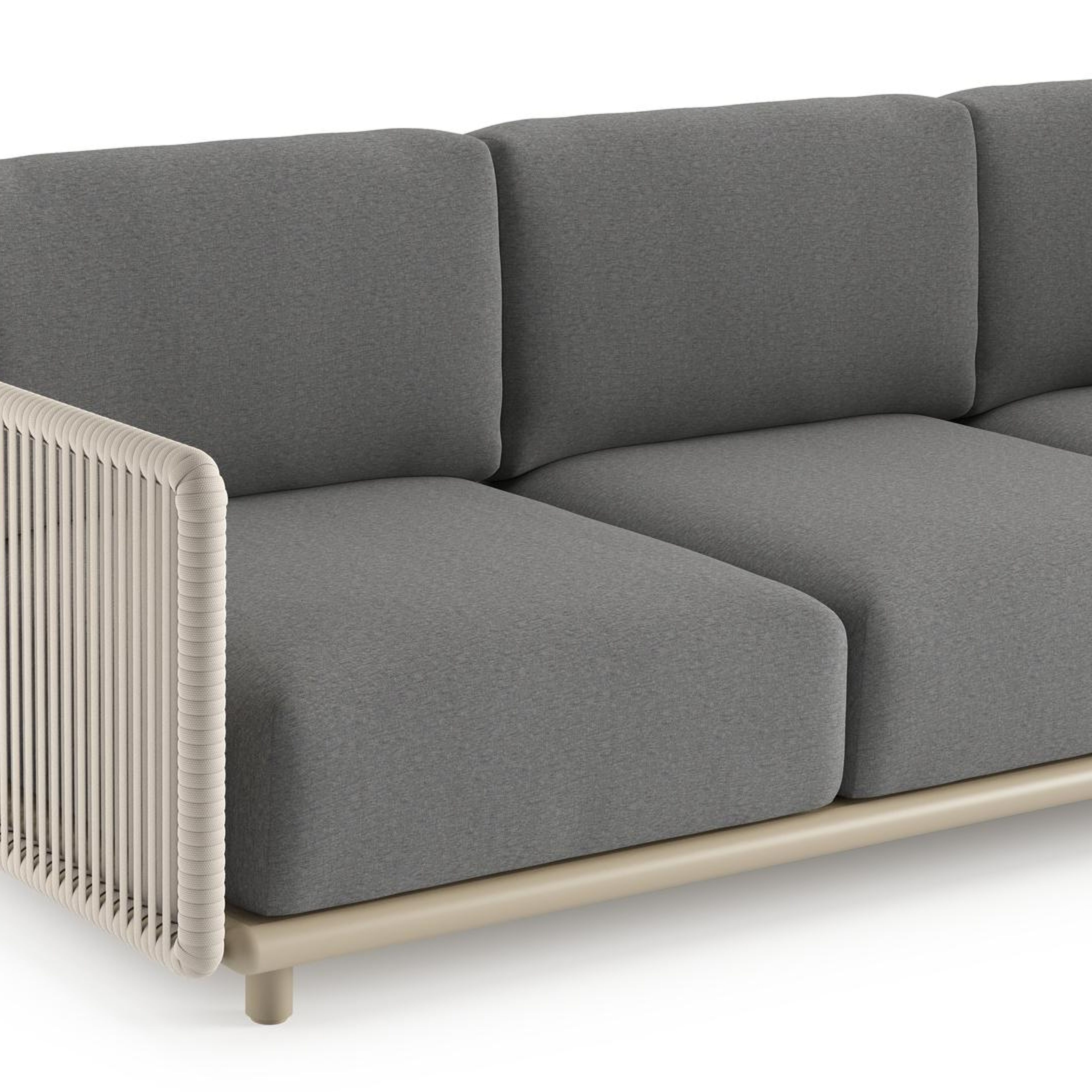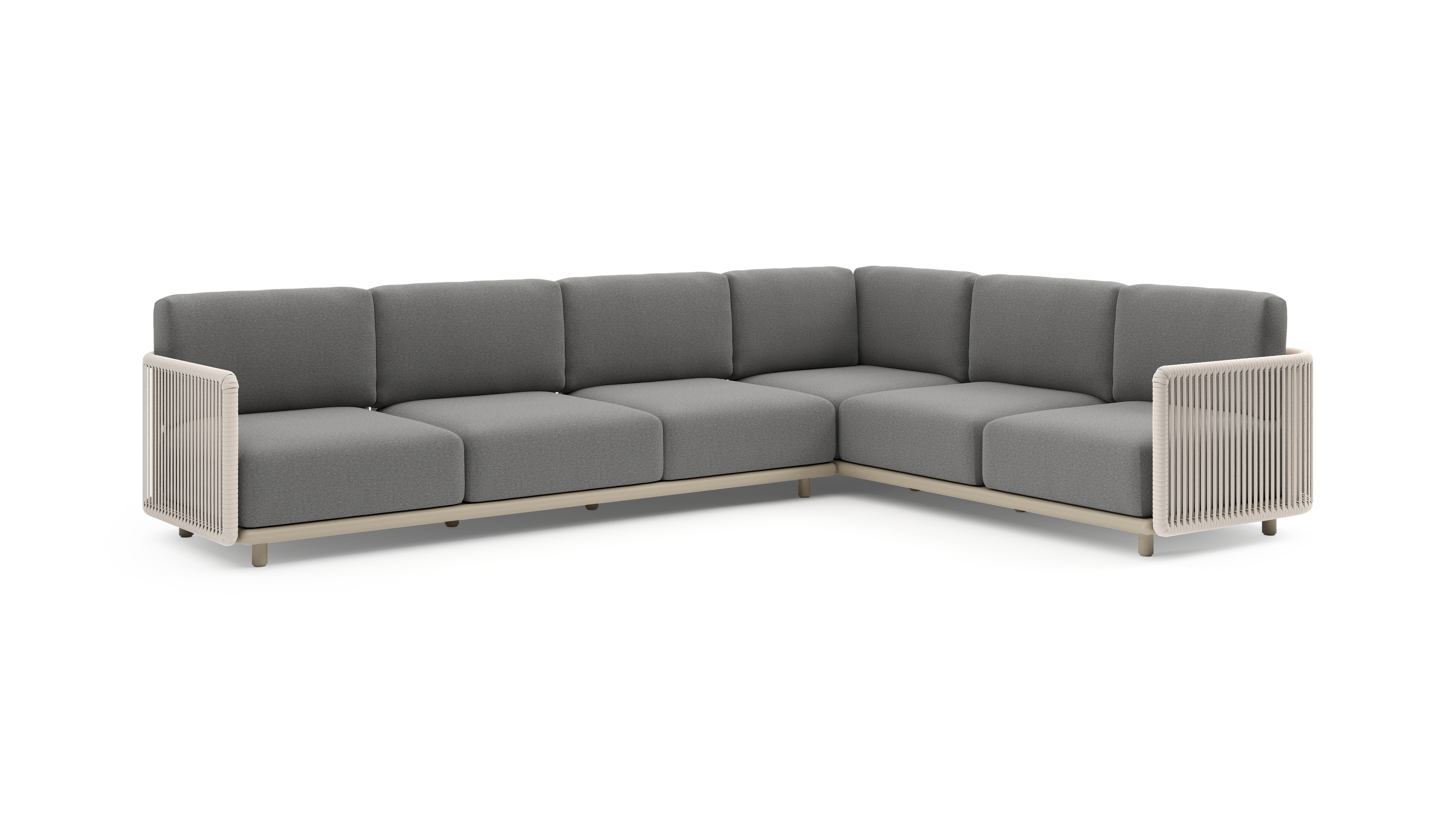 Organo loungehoek in beige aluminium en beige verticaal geweven luxe vlakke rope met heritage slate all weather Sunbrella® luxe kussen | Exterioo tuinmeubelen