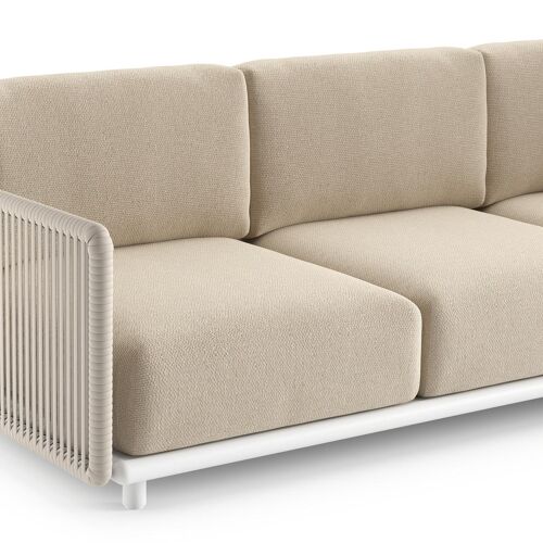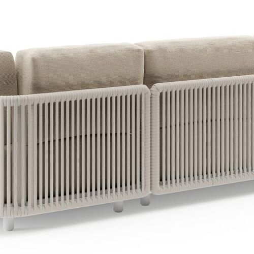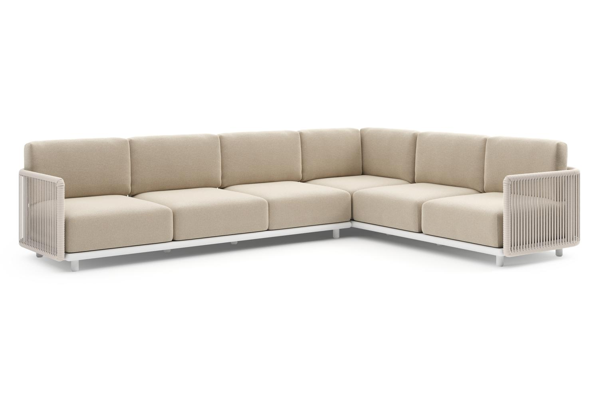 Organo loungehoek in wit aluminium en beige verticaal geweven luxe vlakke rope met althea chalk all weather Cosytica kussen | Exterioo