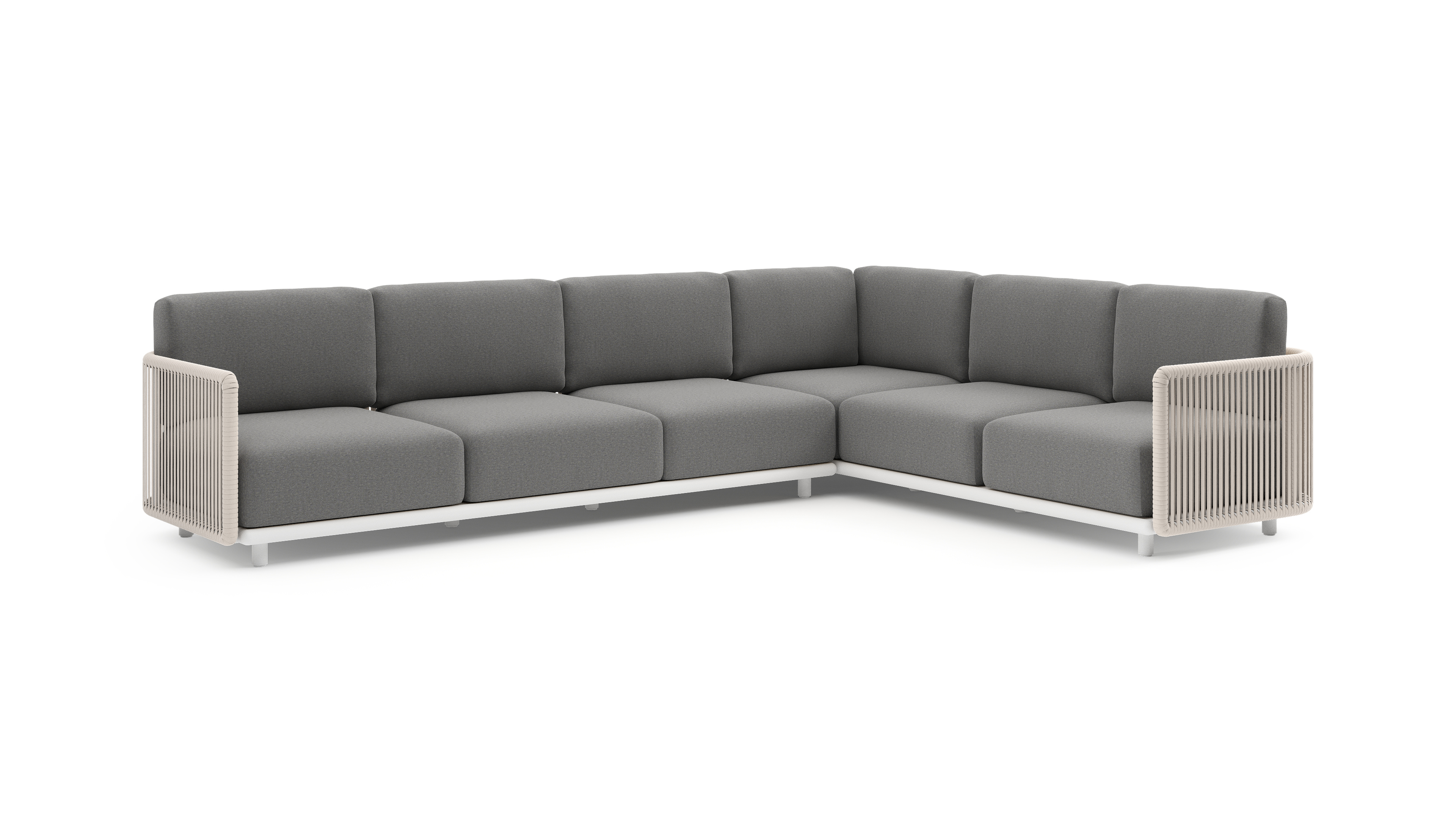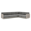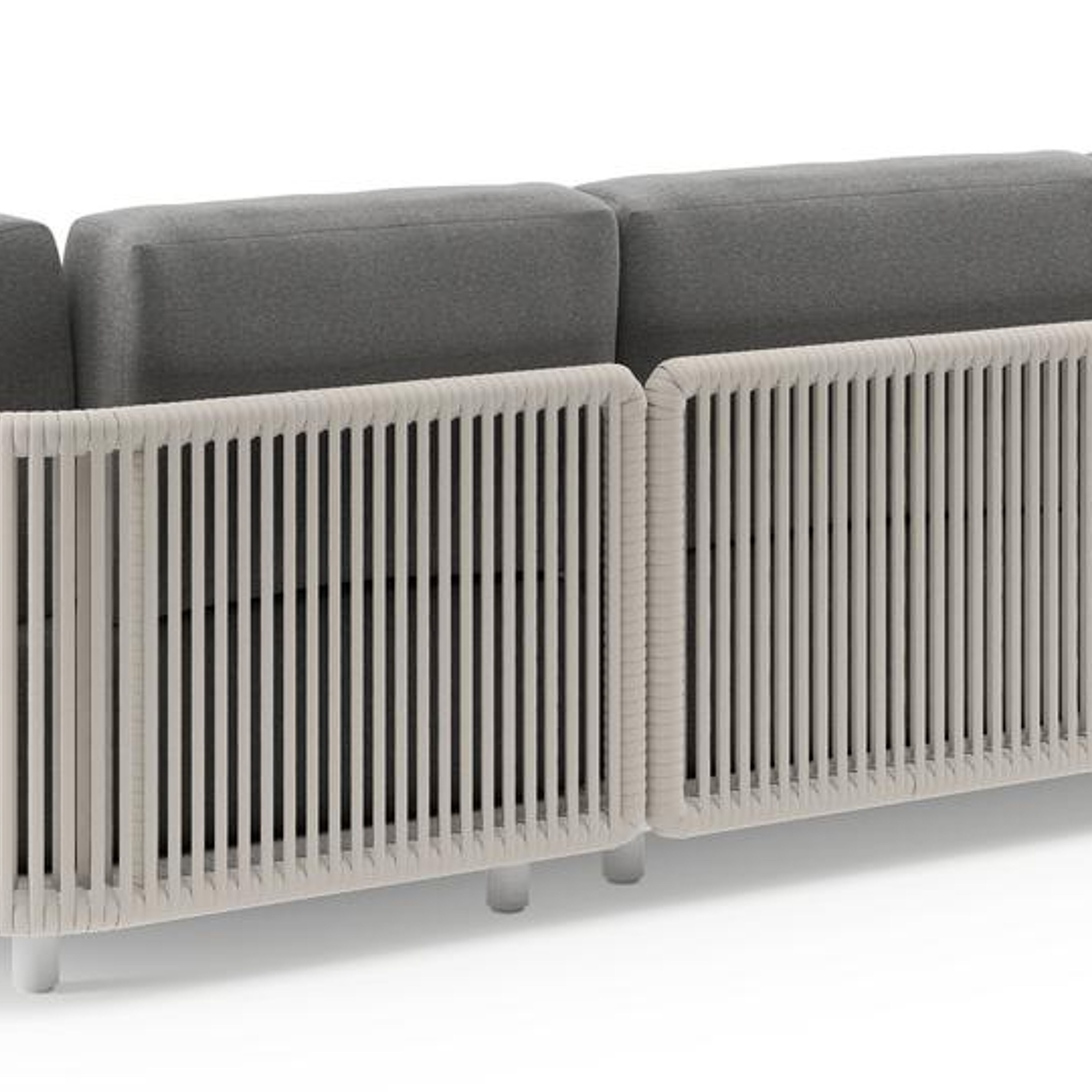 Organo loungehoek in wit aluminium en beige verticaal geweven luxe vlakke rope met heritage slate all weather Sunbrella® luxe kussen | Exterioo tuinmeubelen