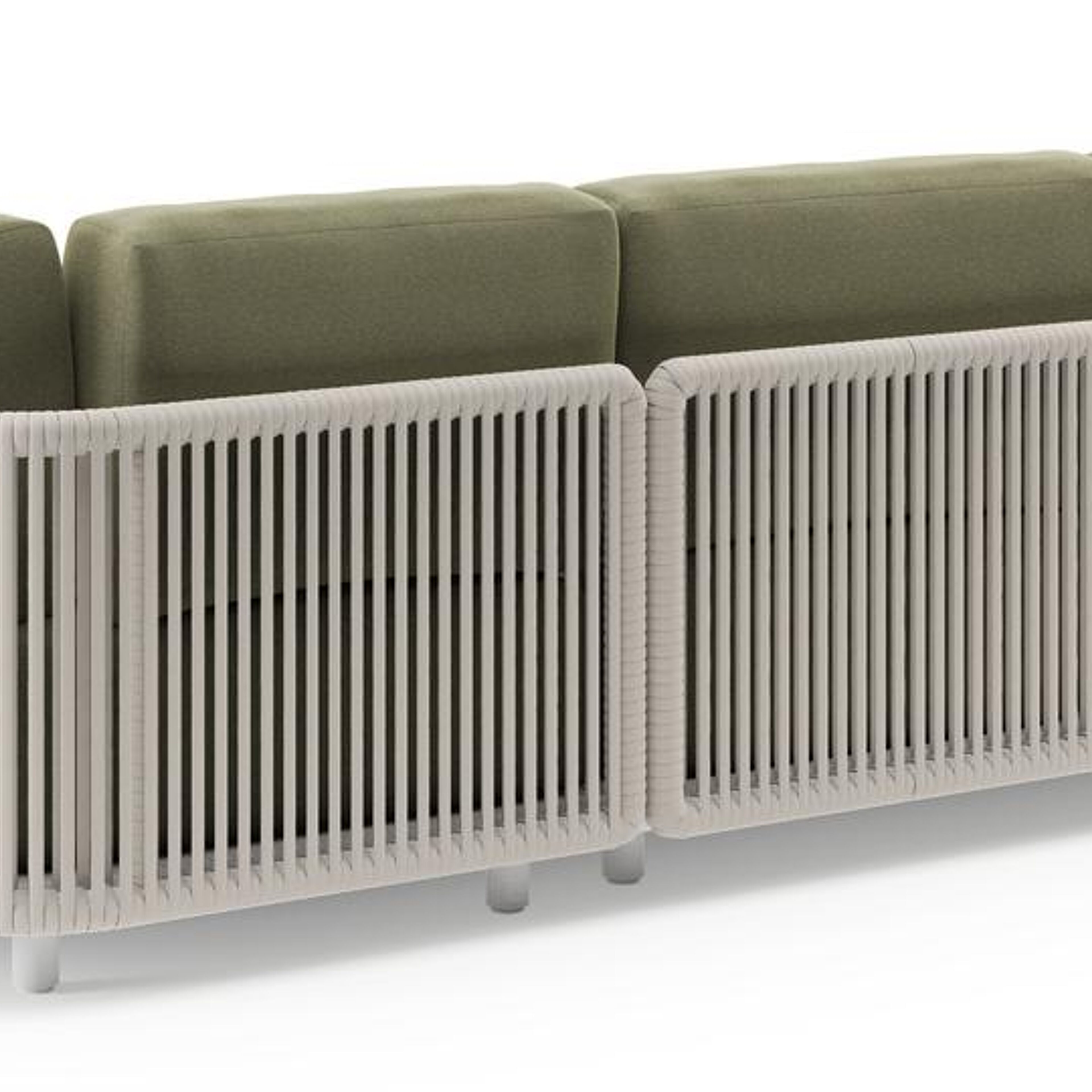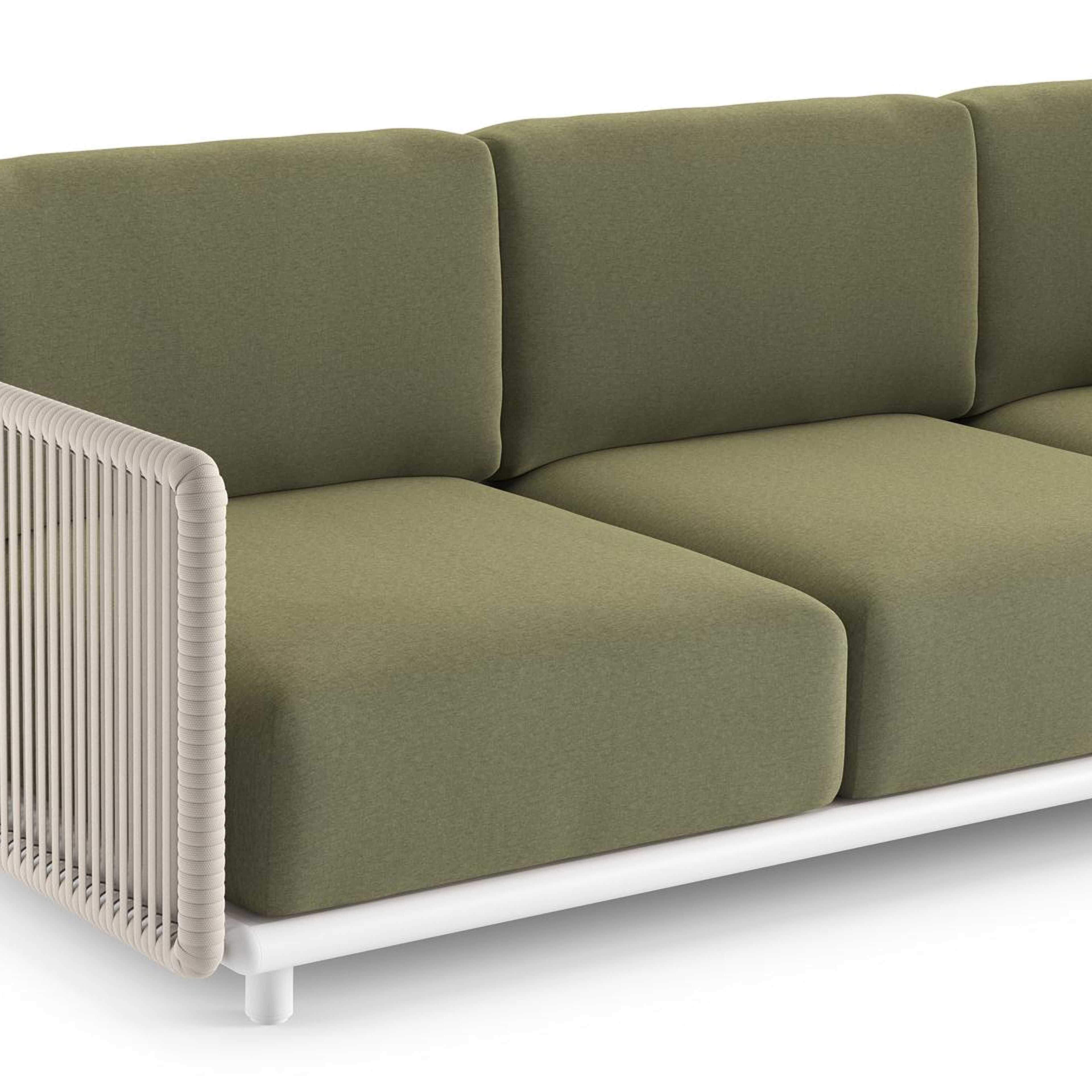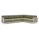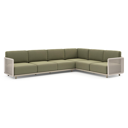 Organo loungehoek in wit aluminium en beige verticaal geweven luxe vlakke rope met heritage leaf all weather Sunbrella® luxe kussen | Exterioo tuinmeubelen