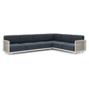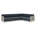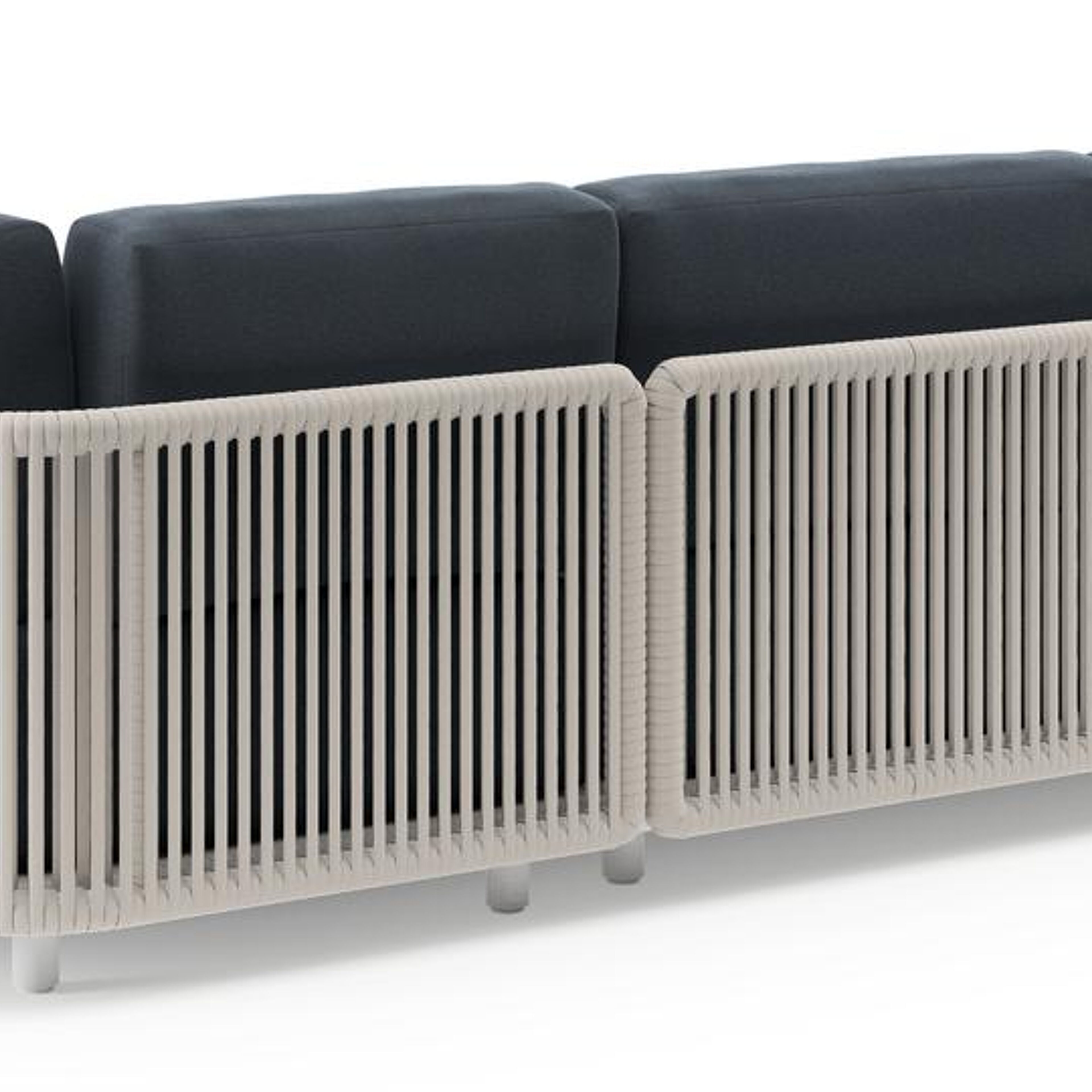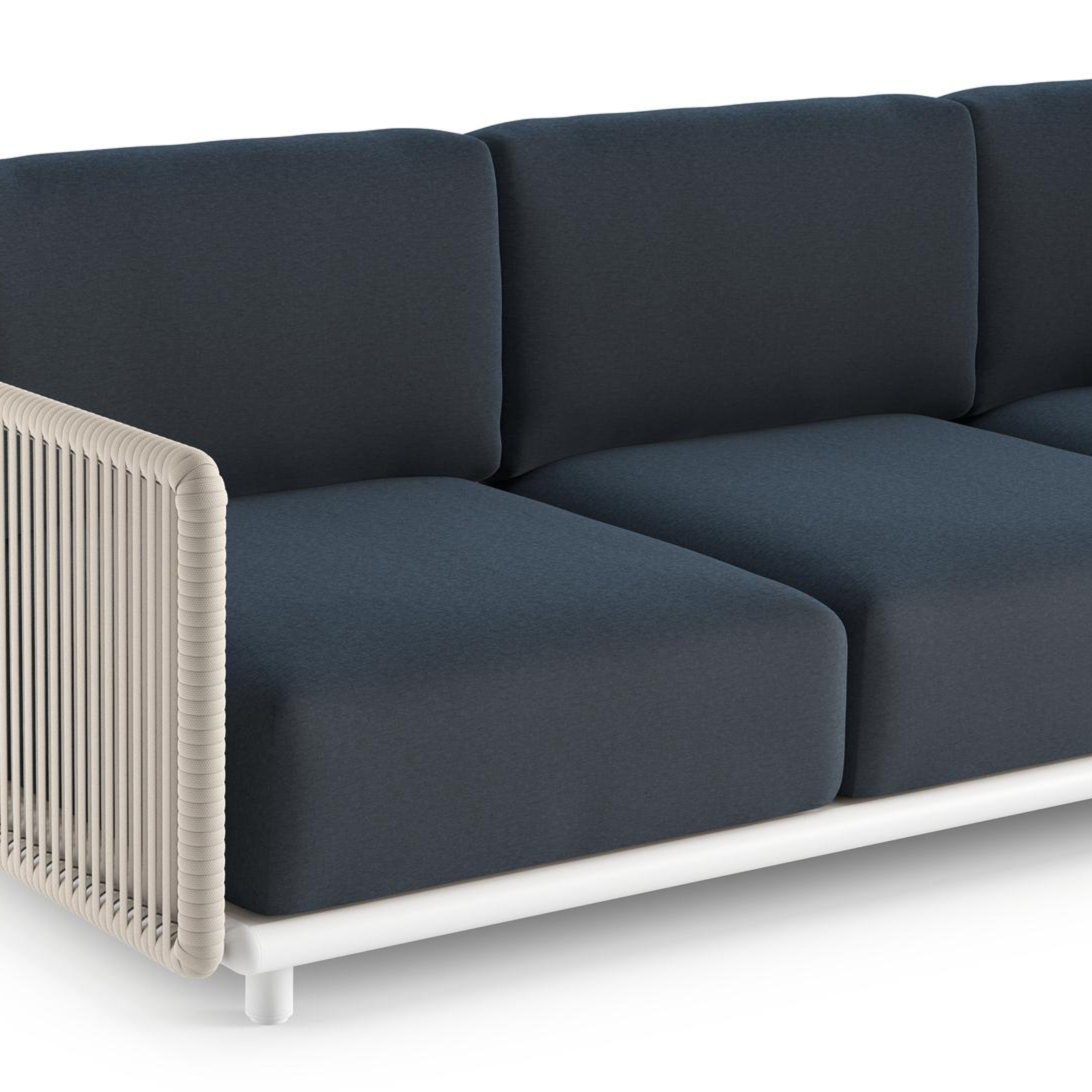 Organo loungehoek in wit aluminium en beige verticaal geweven luxe vlakke rope met heritage indigo all weather Sunbrella® luxe kussen | Exterioo tuinmeubelen