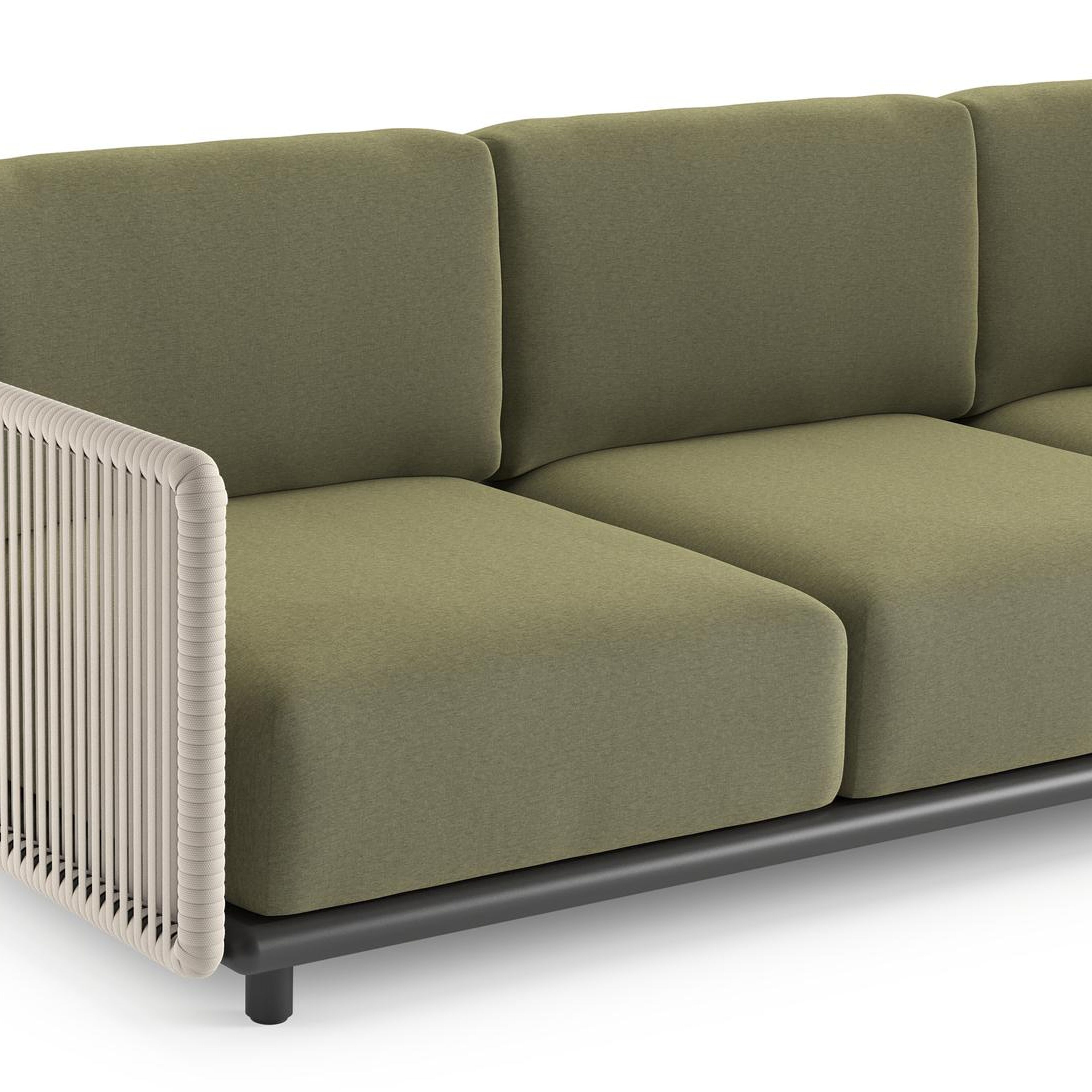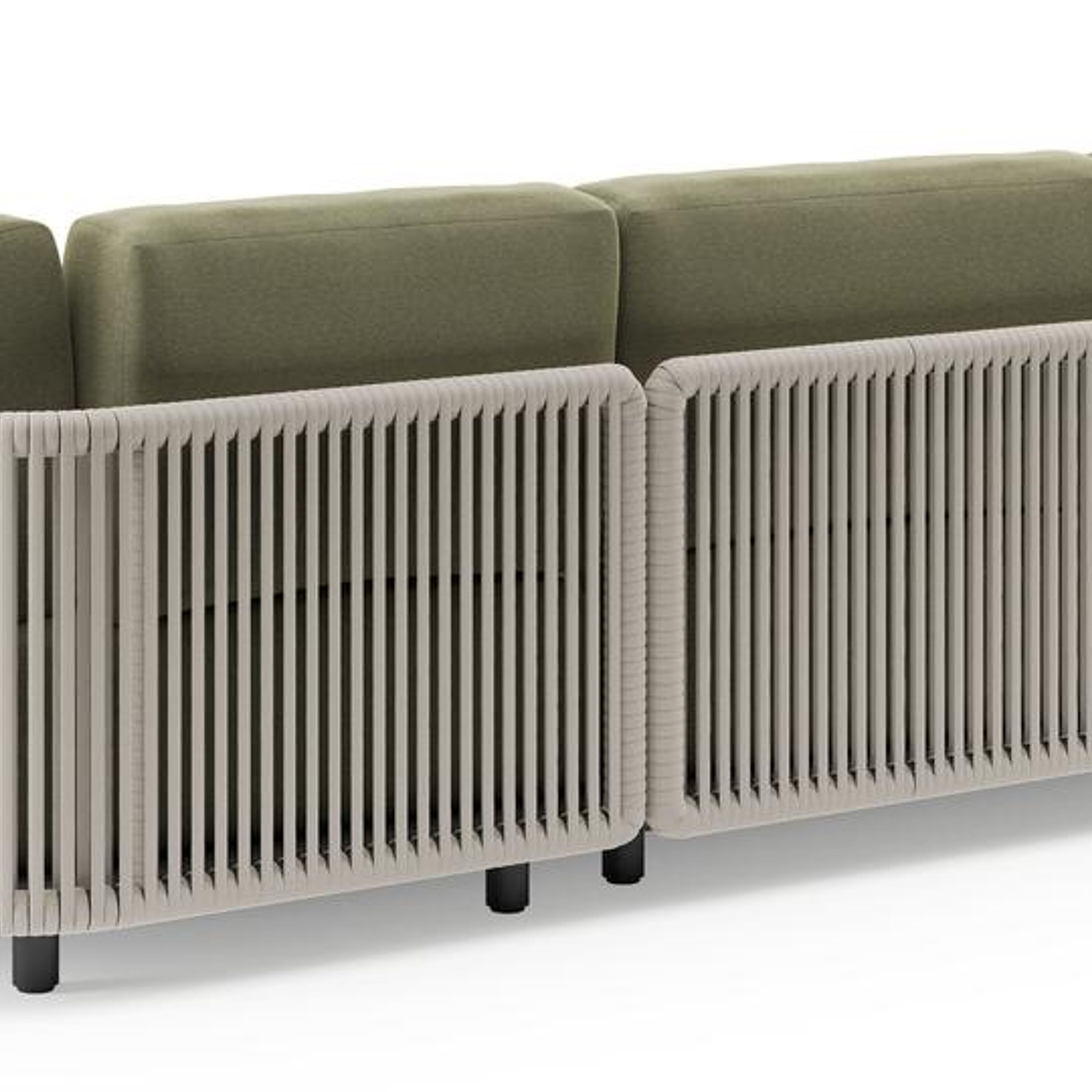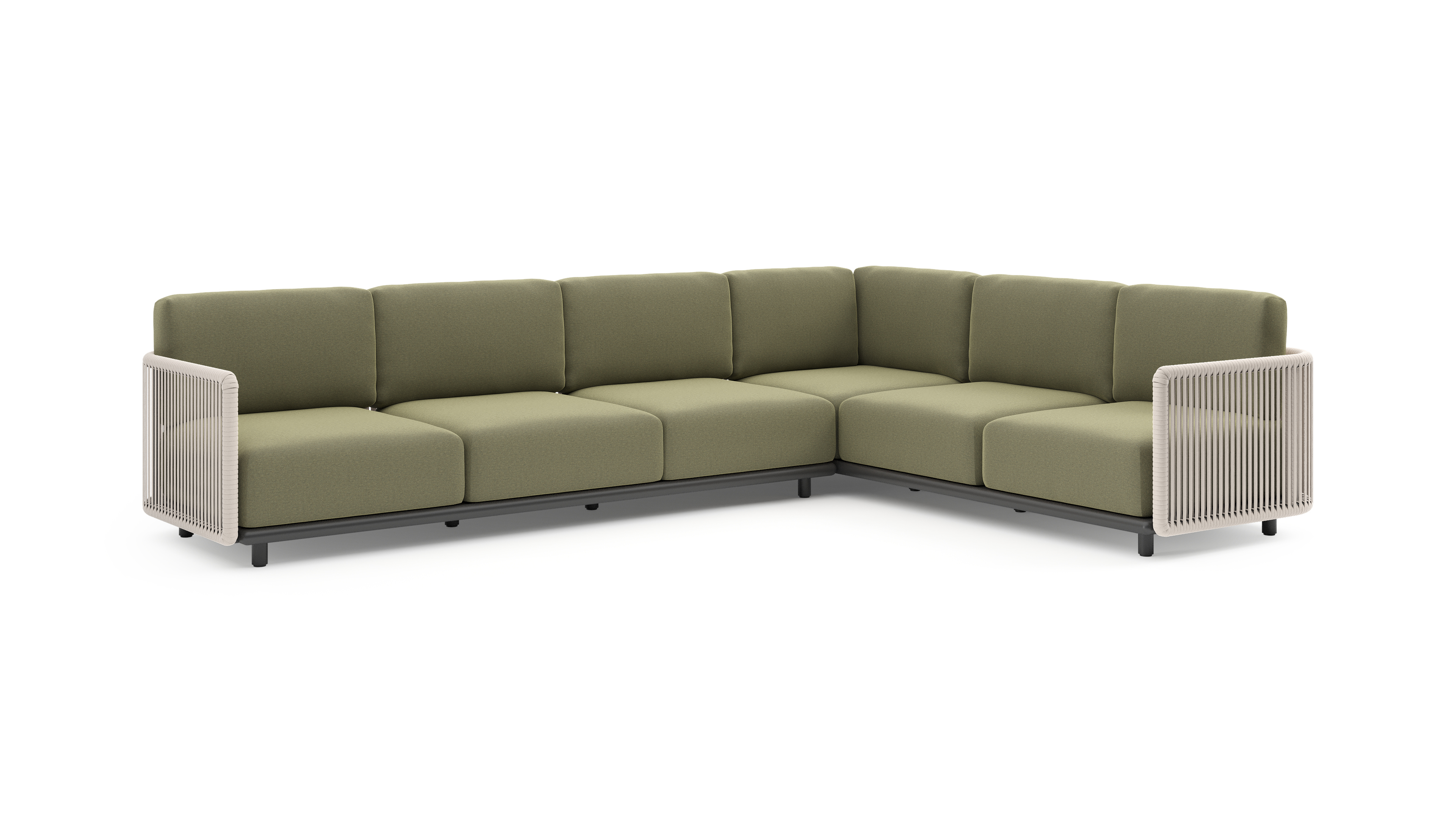 Organo loungehoek in zwart aluminium en beige verticaal geweven luxe vlakke rope met heritage leaf all weather Sunbrella® luxe kussen | Exterioo tuinmeubelen