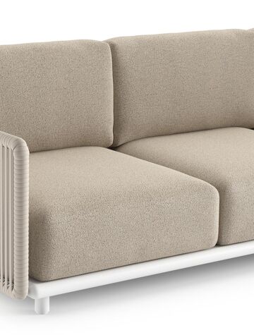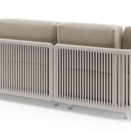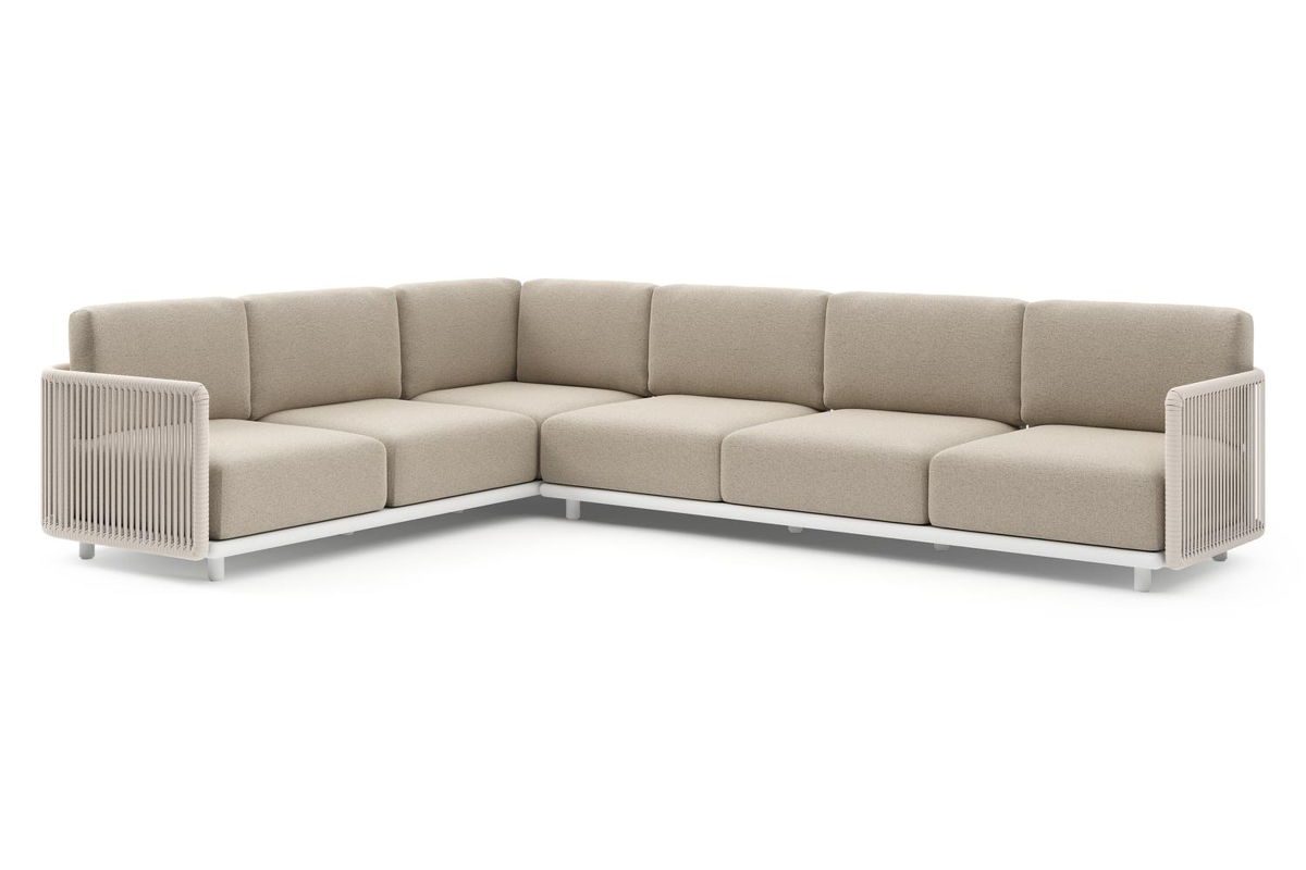 Organo loungehoek in wit aluminium en beige verticaal geweven luxe vlakke rope met marbella beige all weather Cosytica kussen | Exterioo