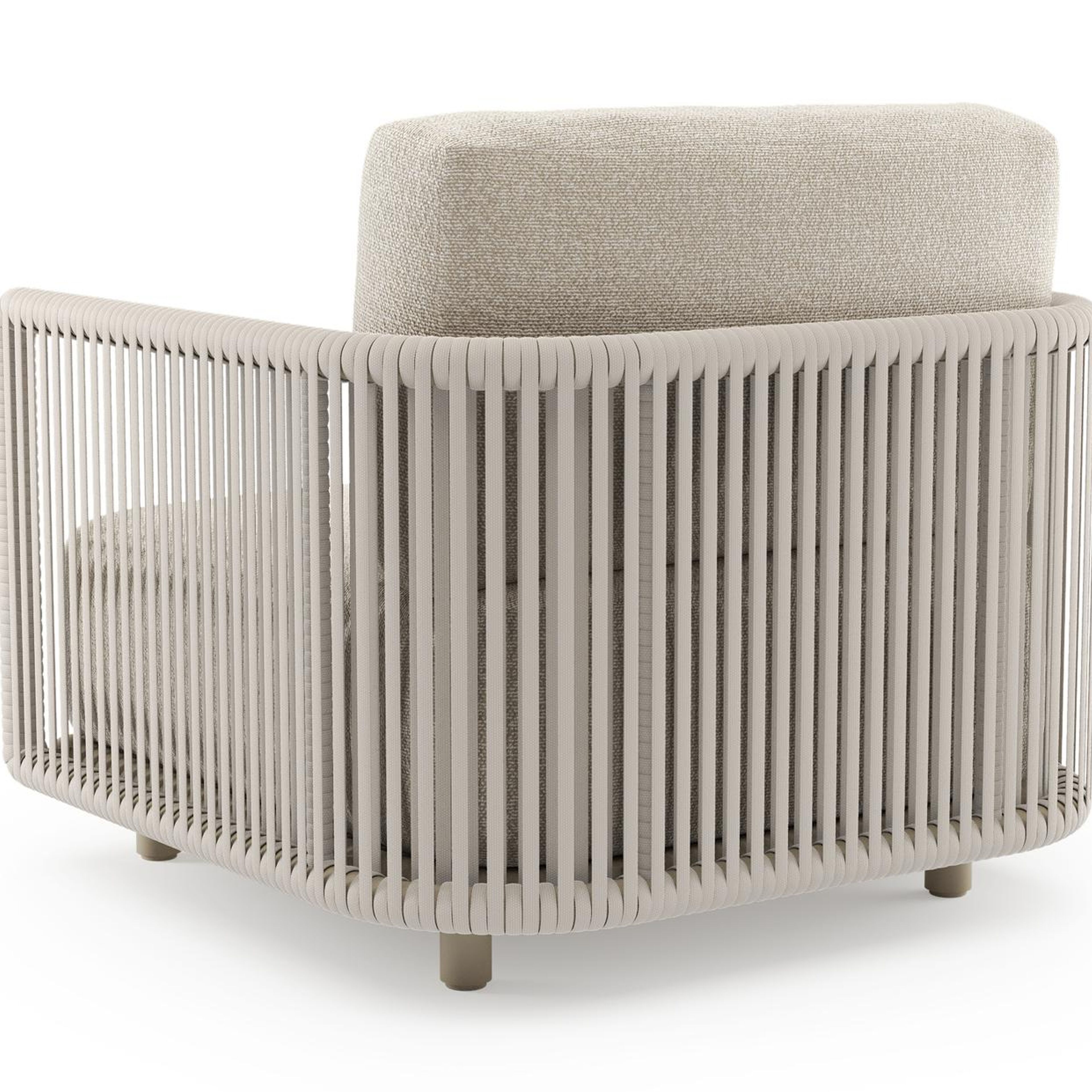 Organo loungestoel in beige aluminium en beige verticaal geweven luxe vlakke rope met marbella ecru all weather Cosytica kussen | Exterioo tuinmeubelen