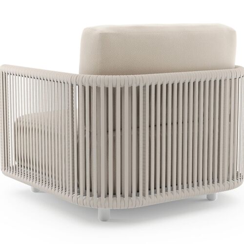 Organo loungestoel in wit aluminium en beige verticaal geweven luxe vlakke rope met lopi antique all weather Sunbrella® luxe kussen | Exterioo
