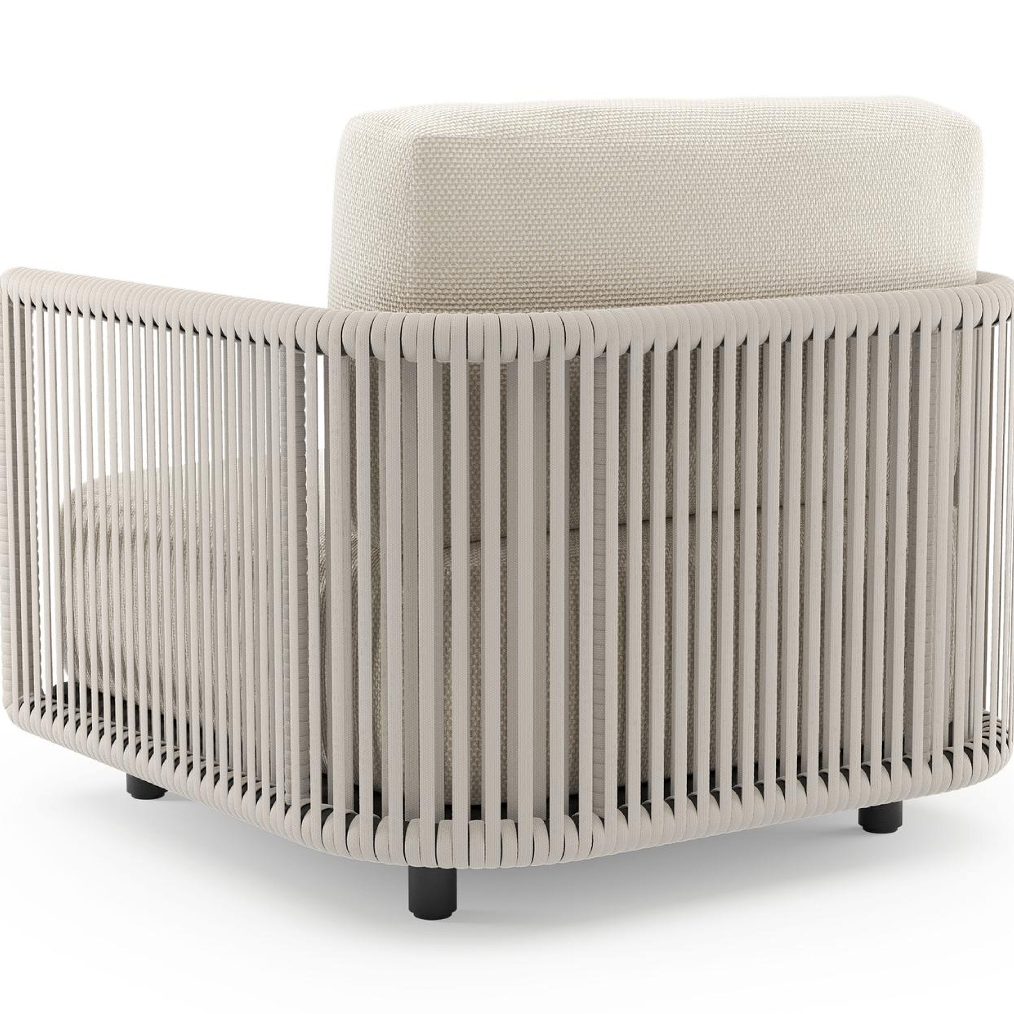Organo loungestoel in zwart aluminium en beige verticaal geweven luxe vlakke rope met althea off white all weather Cosytica kussen | Exterioo tuinmeubelen