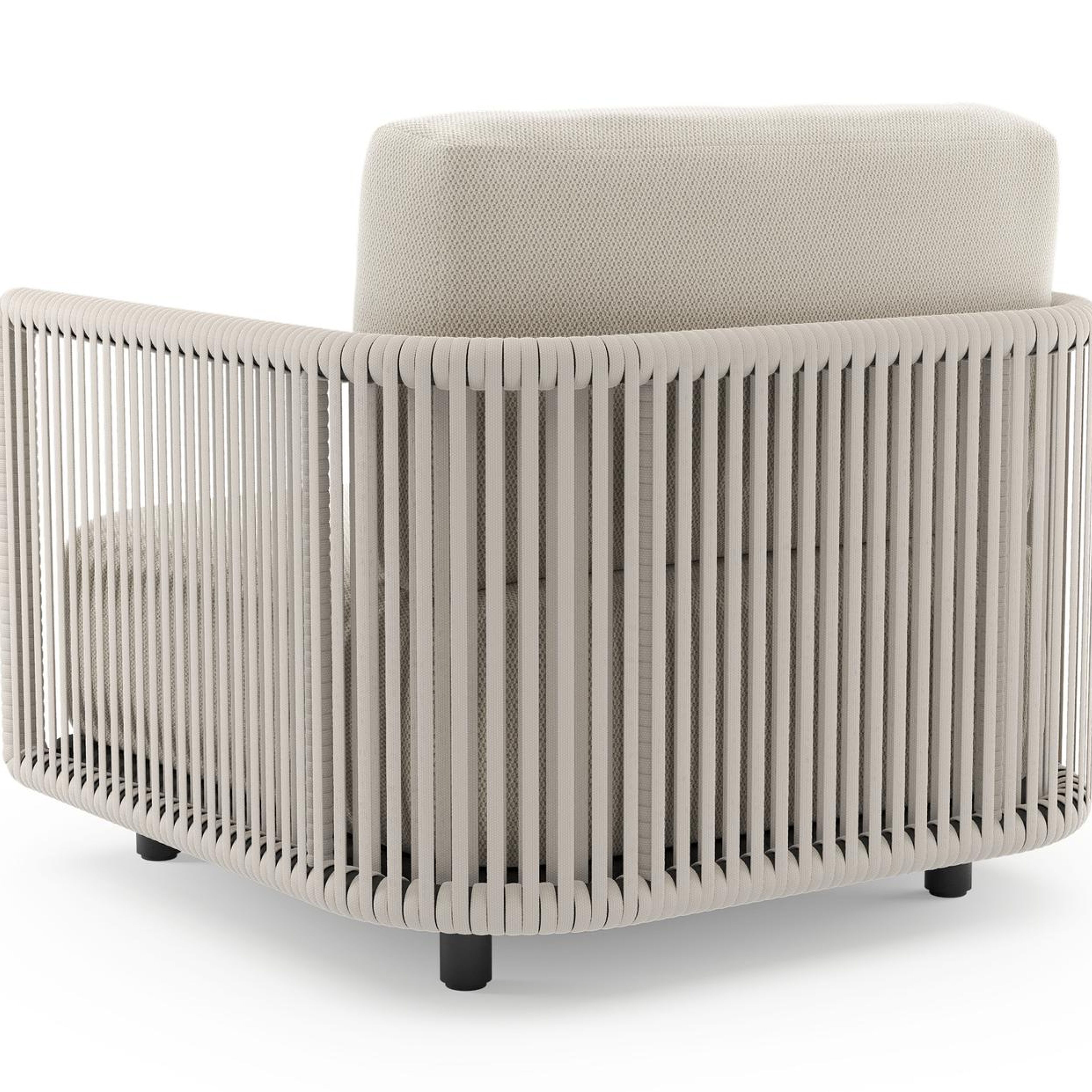 Organo loungestoel in zwart aluminium en beige verticaal geweven luxe vlakke rope met lopi marble all weather Sunbrella® luxe kussen | Exterioo tuinmeubelen