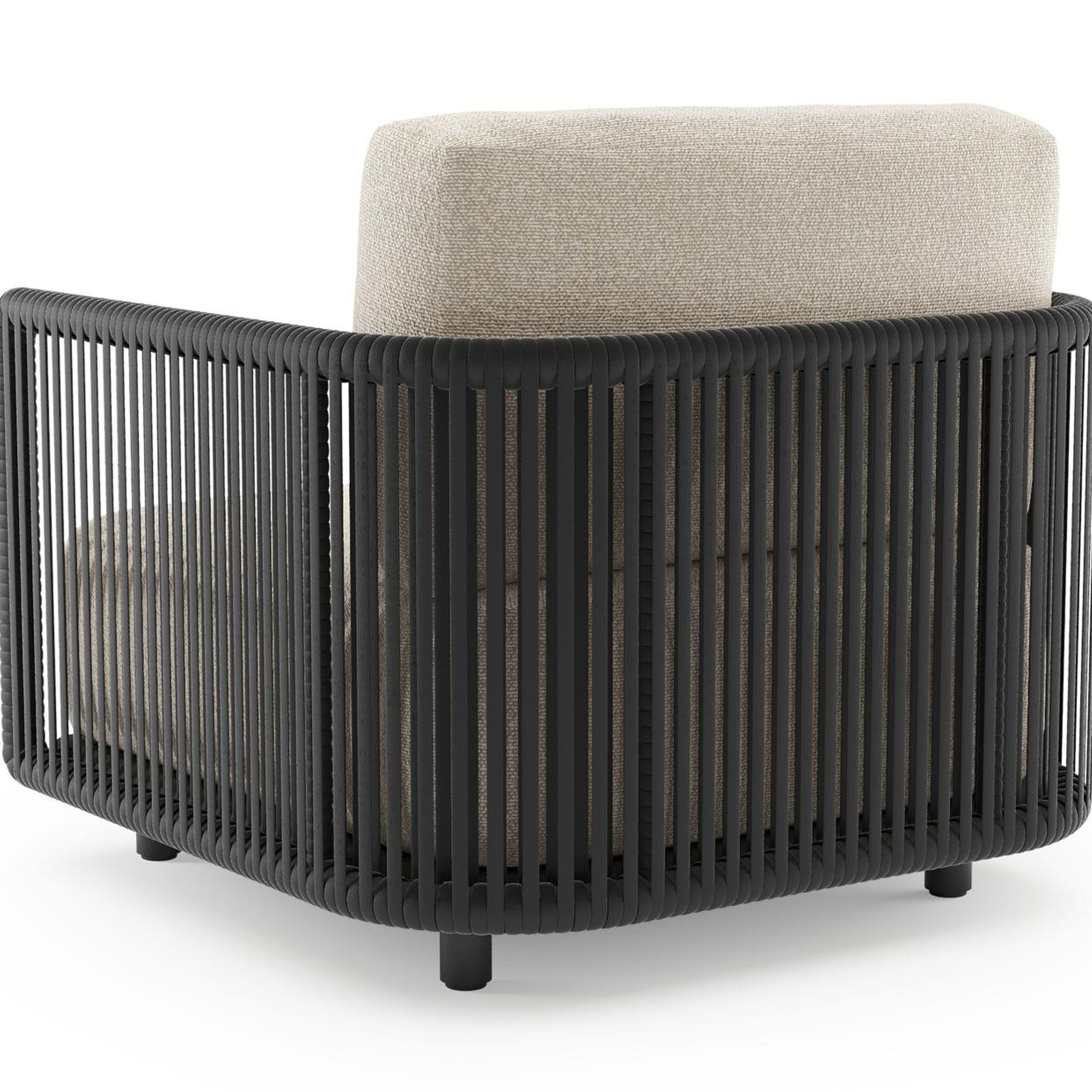 Organo loungestoel in zwart aluminium en zwart verticaal geweven luxe vlakke rope met marbella ecru all weather Cosytica kussen | Exterioo tuinmeubelen
