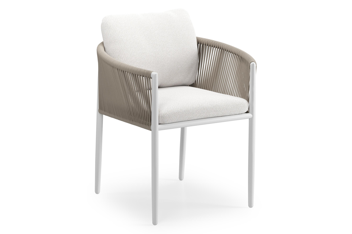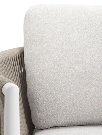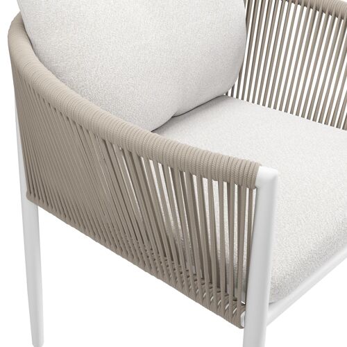 Organo tuinstoel in beige aluminium en beige verticaal geweven luxe vlakke rope met stoelkussen in All Weather Solica Soul Optik | Exterioo