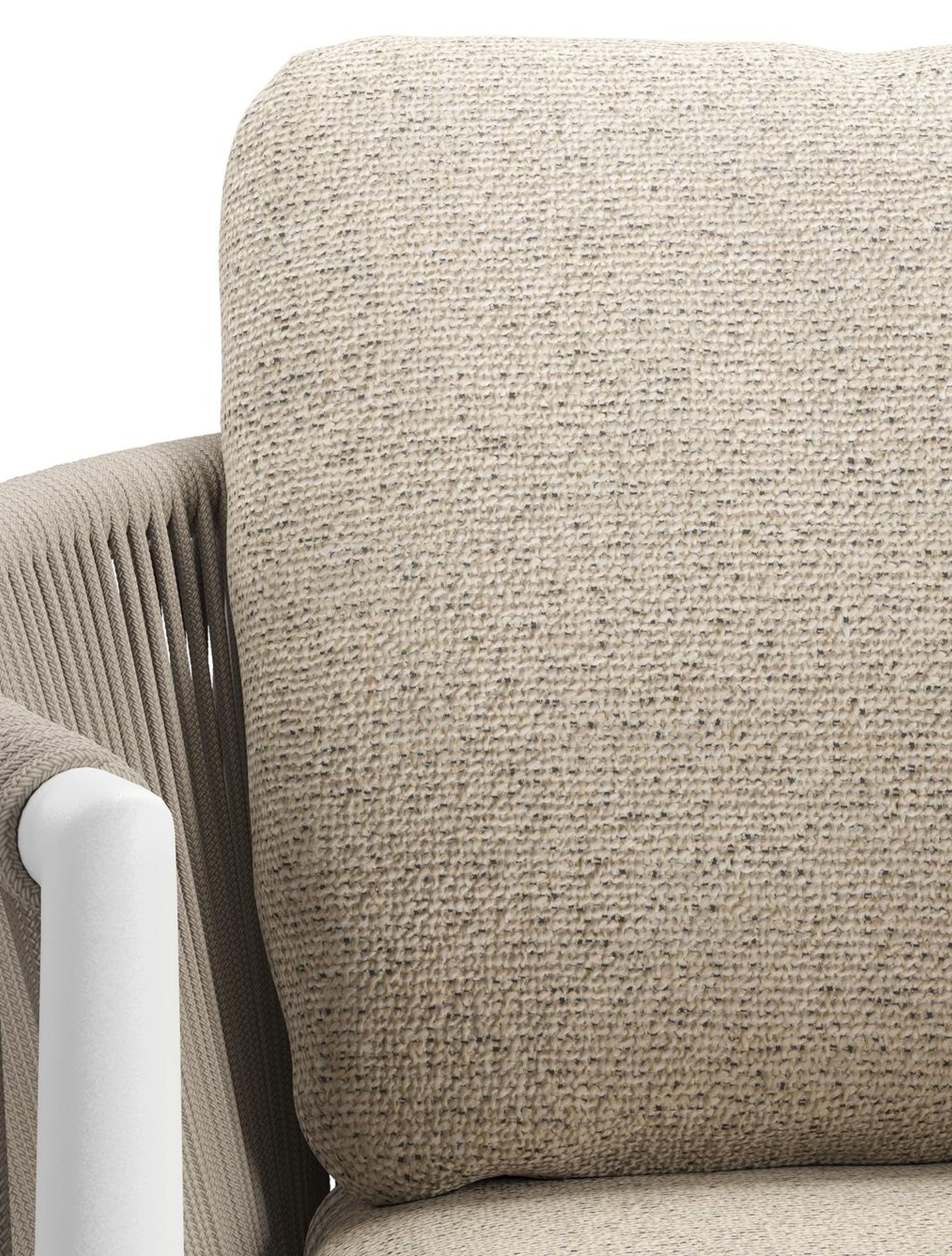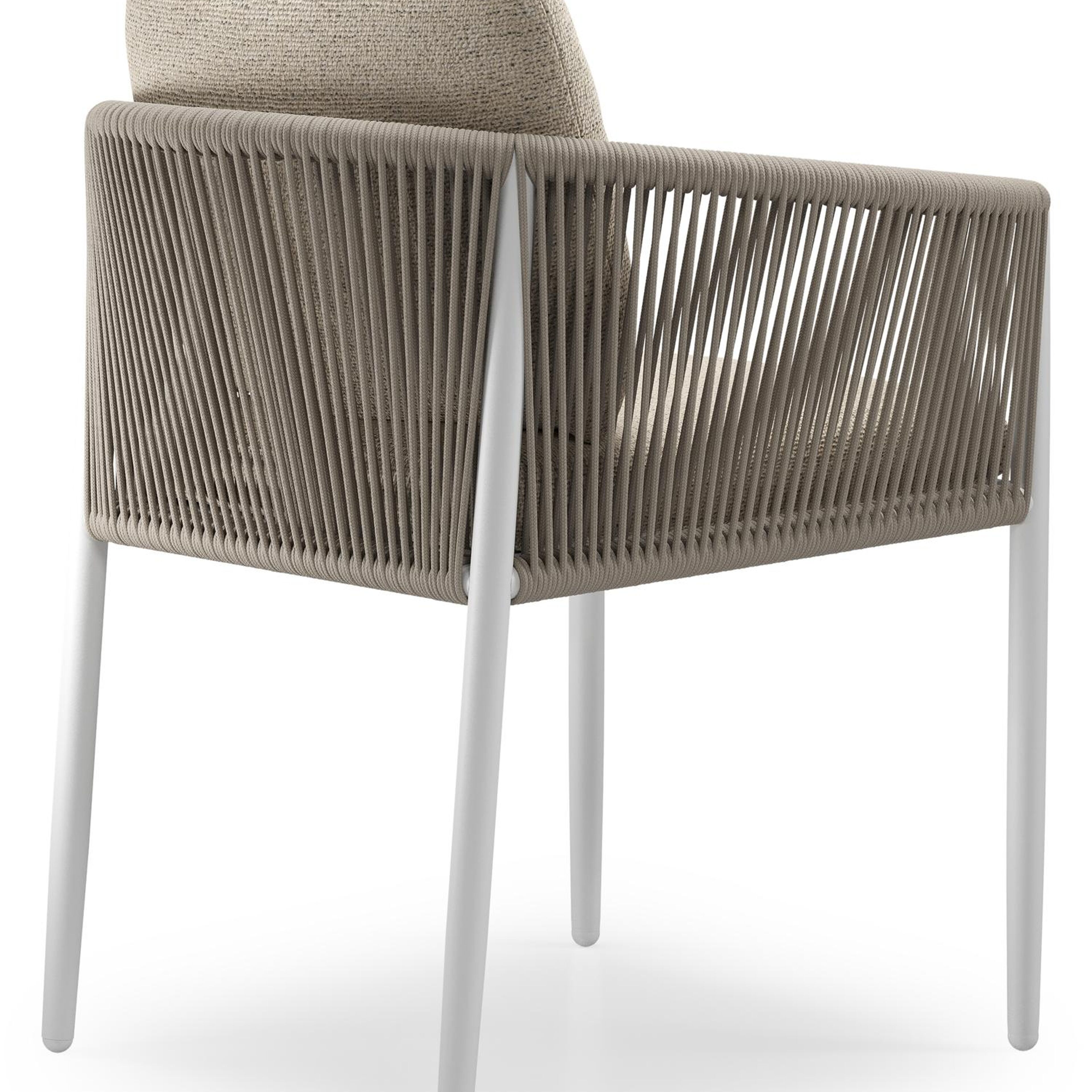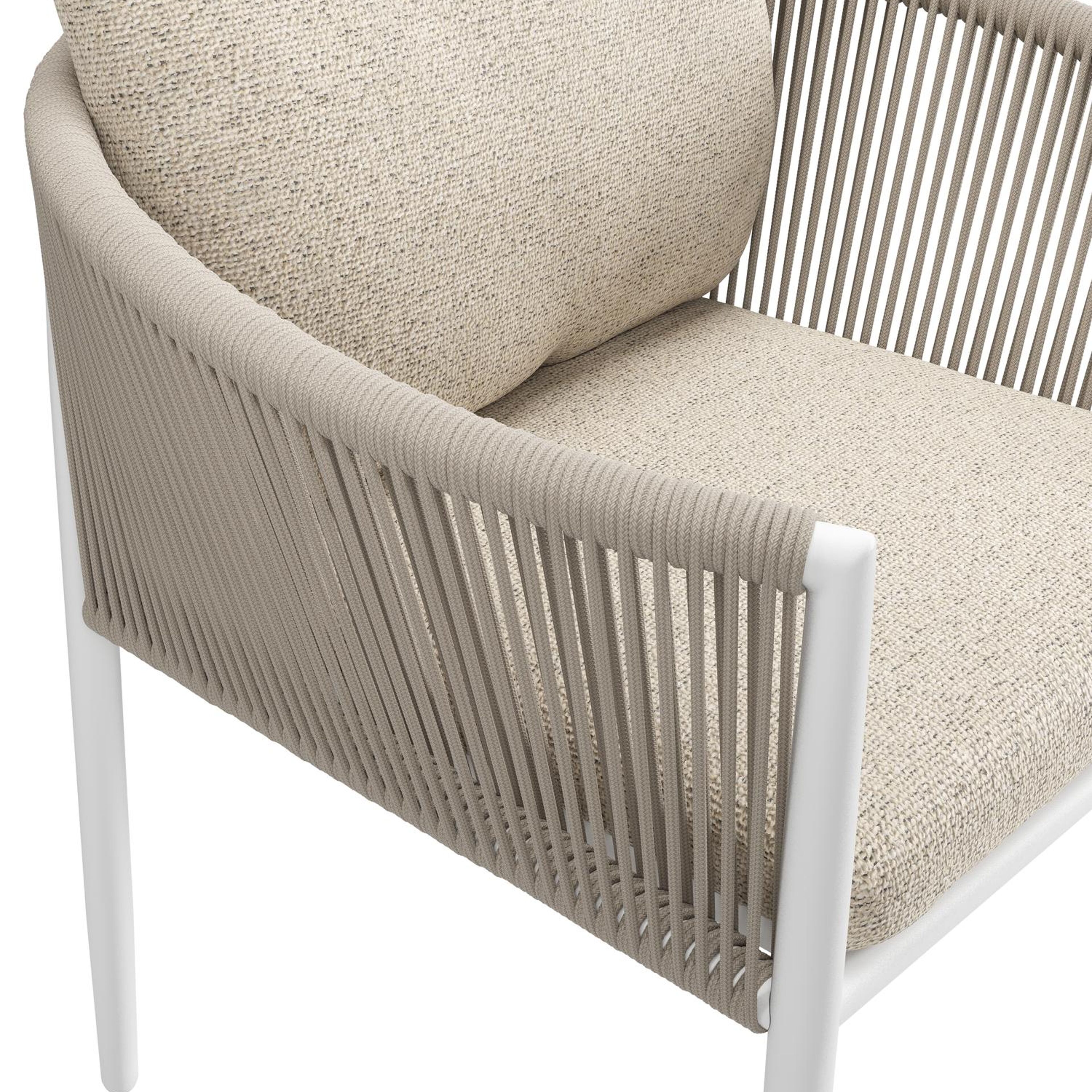 Organo tuinstoel in beige aluminium en beige verticaal geweven ronde rope met stoelkussen in All Weather Cosytica Marbella Beige | Exterioo tuinmeubelen
